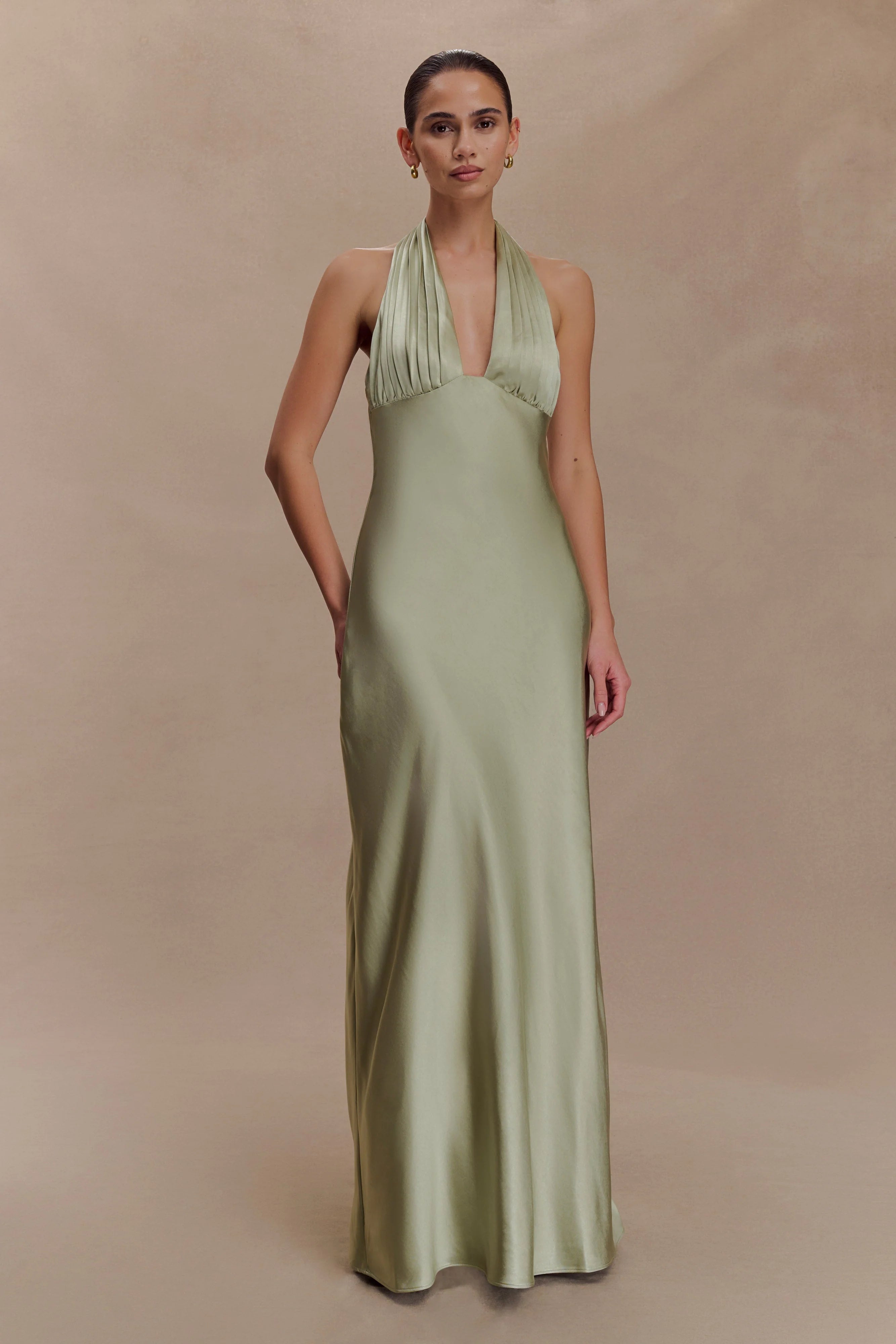 The ALICE Satin Halter Maxi Dress is your answer to elegant ease. Featuring a sleek halter neckline and deep V front, this silhouette flatters with a micro-pleated bust panel that adds subtle texture and structure. Cut from a luxe satin fabrication, the straight skirt flows into a maxi length for a timeless, elongating effect. A relaxed fit and invisible back zip ensure comfort without compromising on polish. Fully lined and made to move with you—from formal evenings to elevated celebrations.