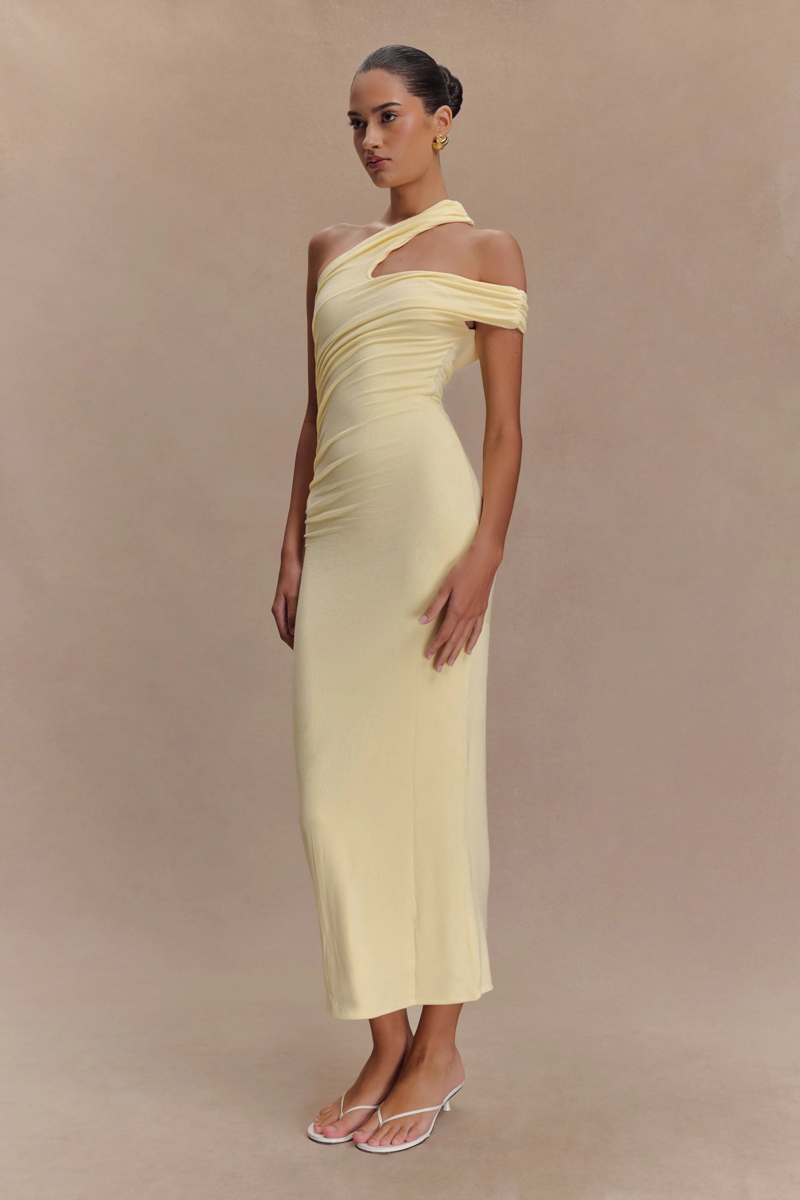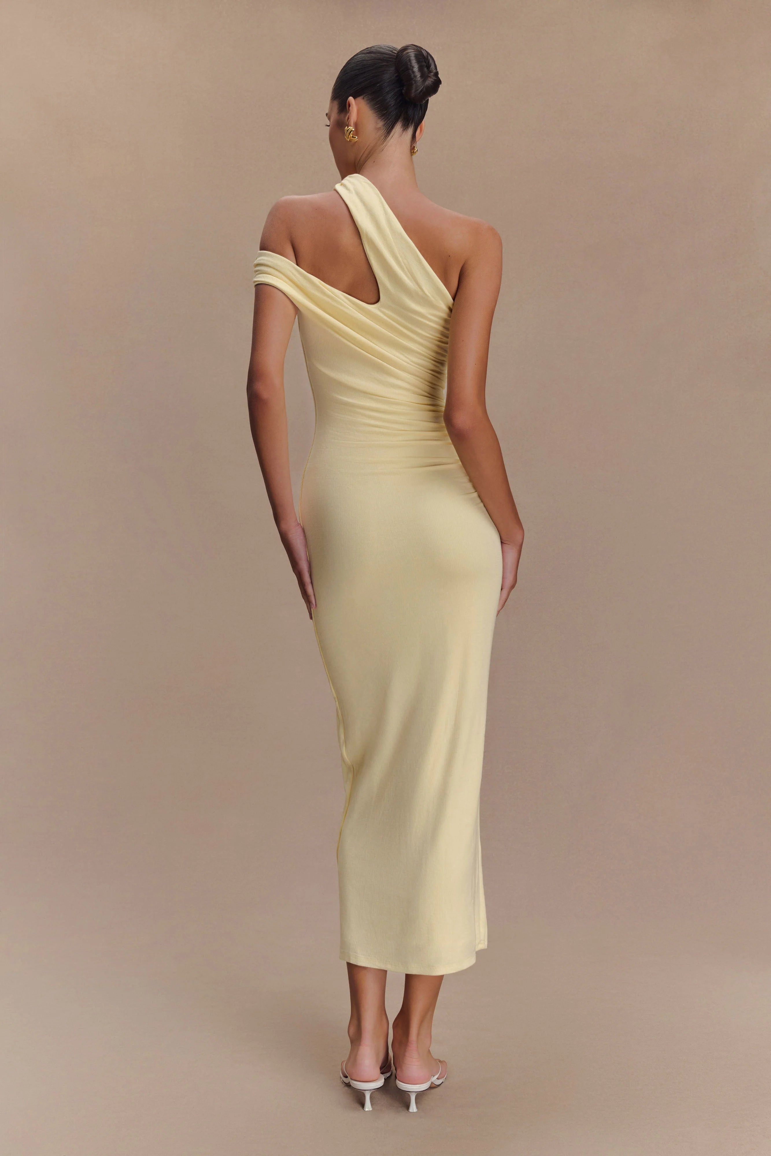 The ANASTASIA One Shoulder Modal Midi Dress is a stunning blend of elegance and contemporary design. Featuring an asymmetrical neckline with a shoulder cut-out, this one-shoulder dress highlights a unique and stylish silhouette. The ruching at the straps and waist enhances its flattering fit and adds texture, while the maxi length offers a graceful look. Lined for added comfort and structure, this dress is perfect for making a chic statement at any special occasion or event.