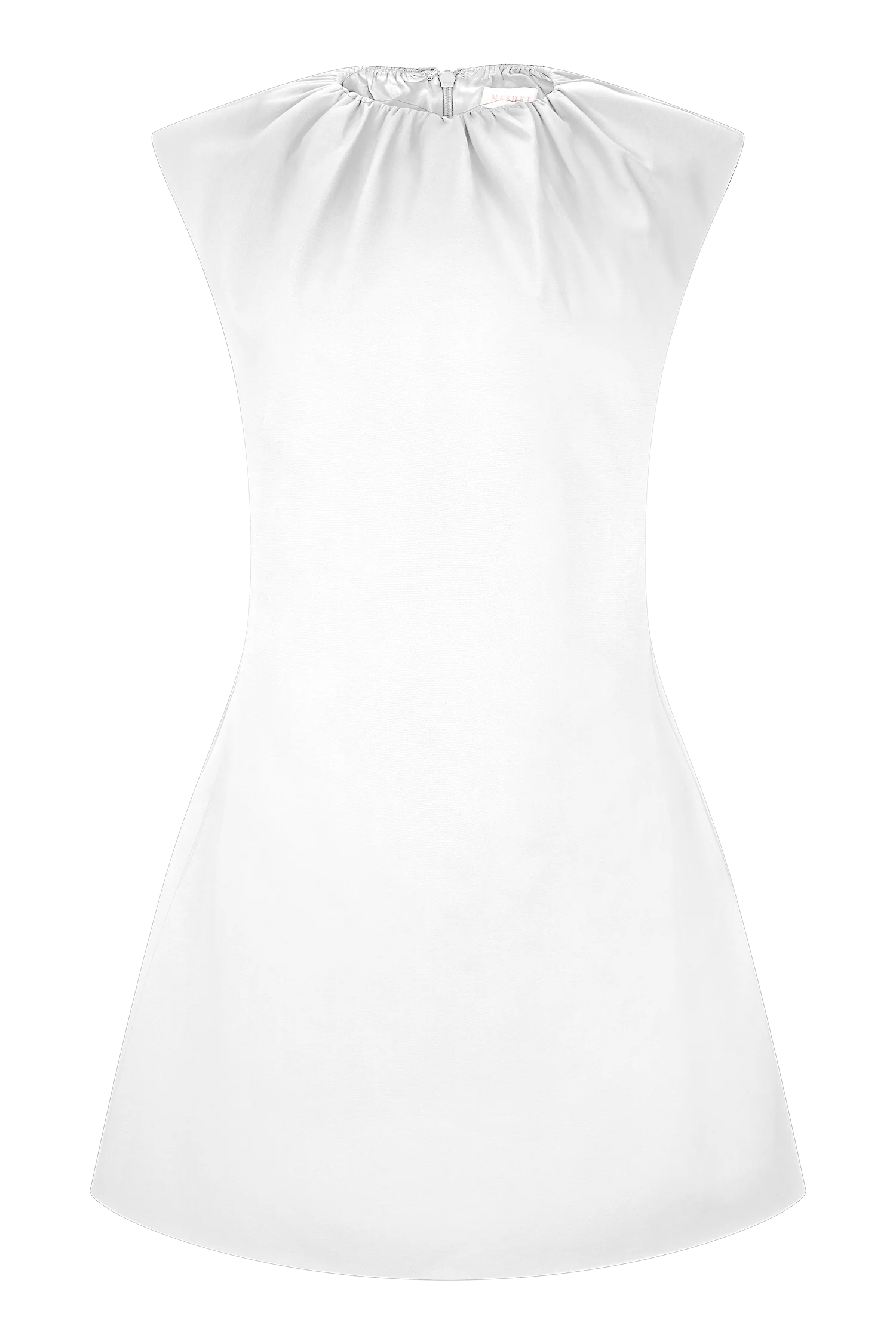 The ARIANA Pleated Neck Mini Dress is a playful yet polished piece made for warm-weather getaways and elevated everyday wear. Featuring a softly pleated, elasticated neckline and cap sleeves, this A-line mini silhouette flatters with its relaxed fit and effortless charm. Lined for comfort and finished with an invisible side zip, this dress is perfect for long lunches, market strolls, or dressing up with sandals for sunset drinks. Simple, sweet, and endlessly wearable.