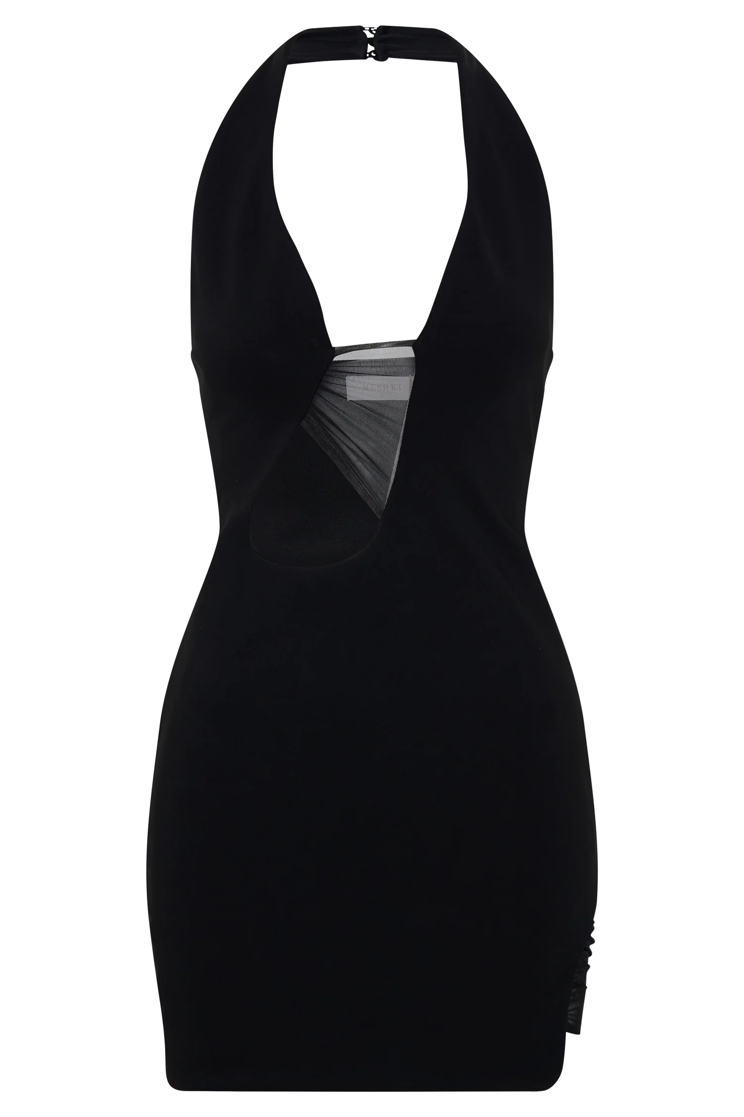 The AUBREE Crepe And Mesh Mini Dress is designed to captivate with its play on contrast and cut. Featuring a halter neckline with a plunging V and a back neck button closure, it’s detailed with a centre-front cut-out for bold allure. A fitted crepe bodice balances against gathered mesh panels at the skirt and front, adding movement and texture. Partially lined for coverage yet sheer in key places, this dress combines a sculpted fit with playful edge at a mini length.