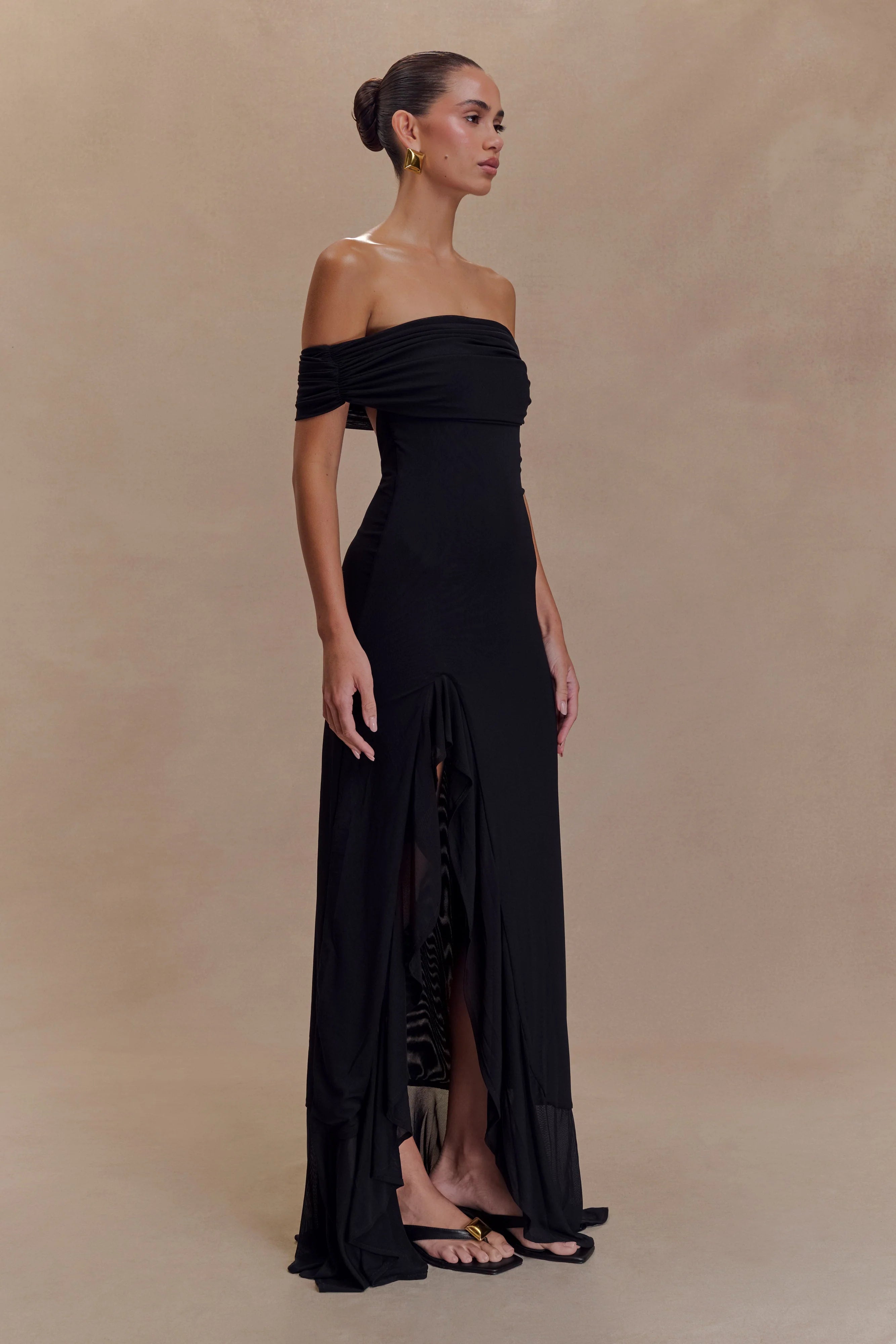 From red carpets to black tie, this is your bold entrance-maker. The AUDREY Off-Shoulder Mesh Maxi Dress needs no introductions. Designed with a show-stopping shoulder-baring neckline draws the eye, while the alluring ruched hip detailing and floor-skimming length elevates the glamour factor. Adorned with a chic hip sash detail leading to a bodycon silhouette hugs your figure in all the right places. Crafted from double-layer fabric, this dress ensures both style and substance, so you can shine all night long.