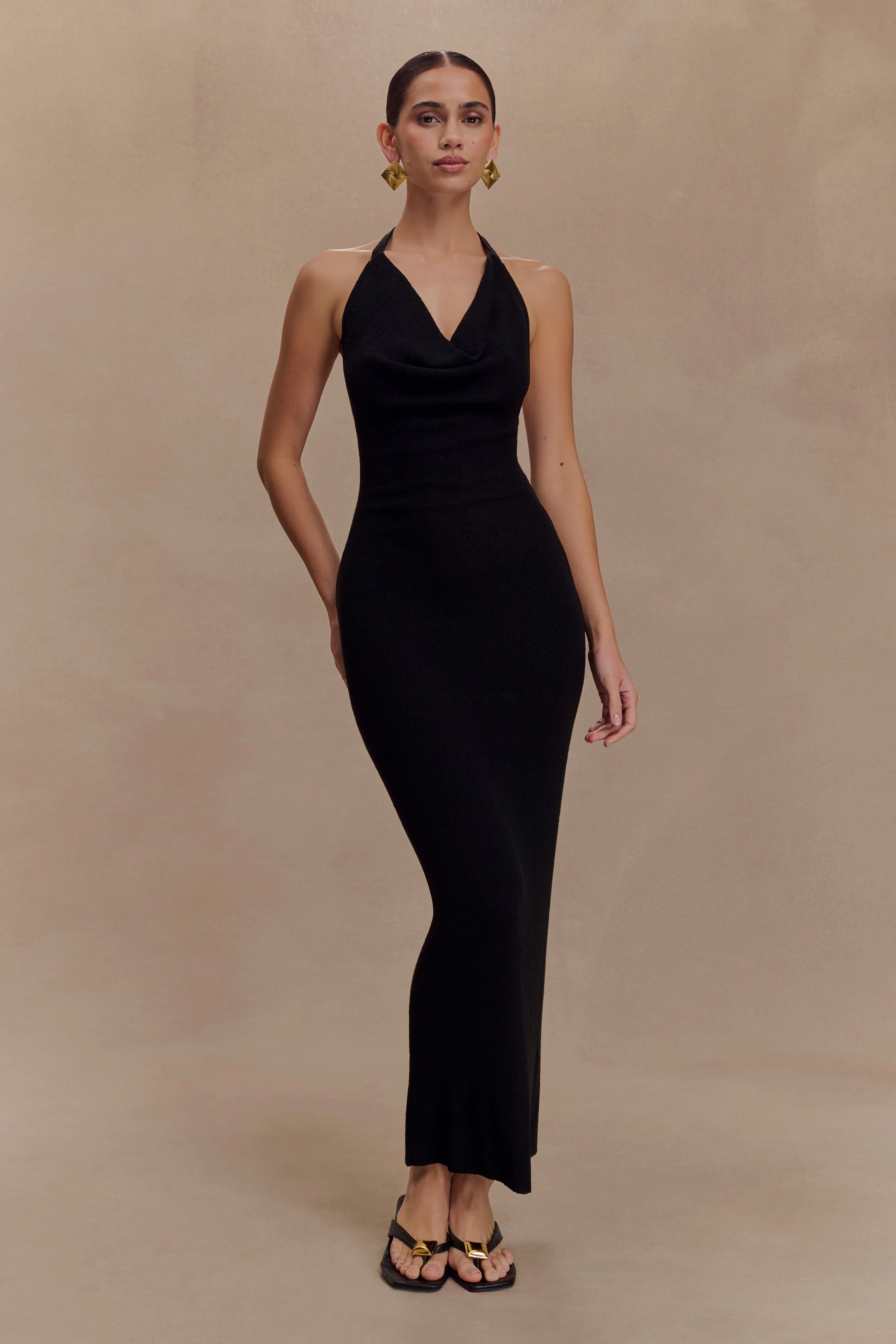 The AYELLA Cowl Knit Maxi Dress is the ultimate in laid-back glamour. Crafted in a lightweight, unlined knit, it drapes effortlessly over the body with a fluid cowl neckline and adjustable halter tie for a custom fit. The open back adds a touch of allure, while the floor-grazing length elongates the silhouette. From golden hour cocktails to barefoot beach strolls, this dress brings ease and elegance to every summer moment.