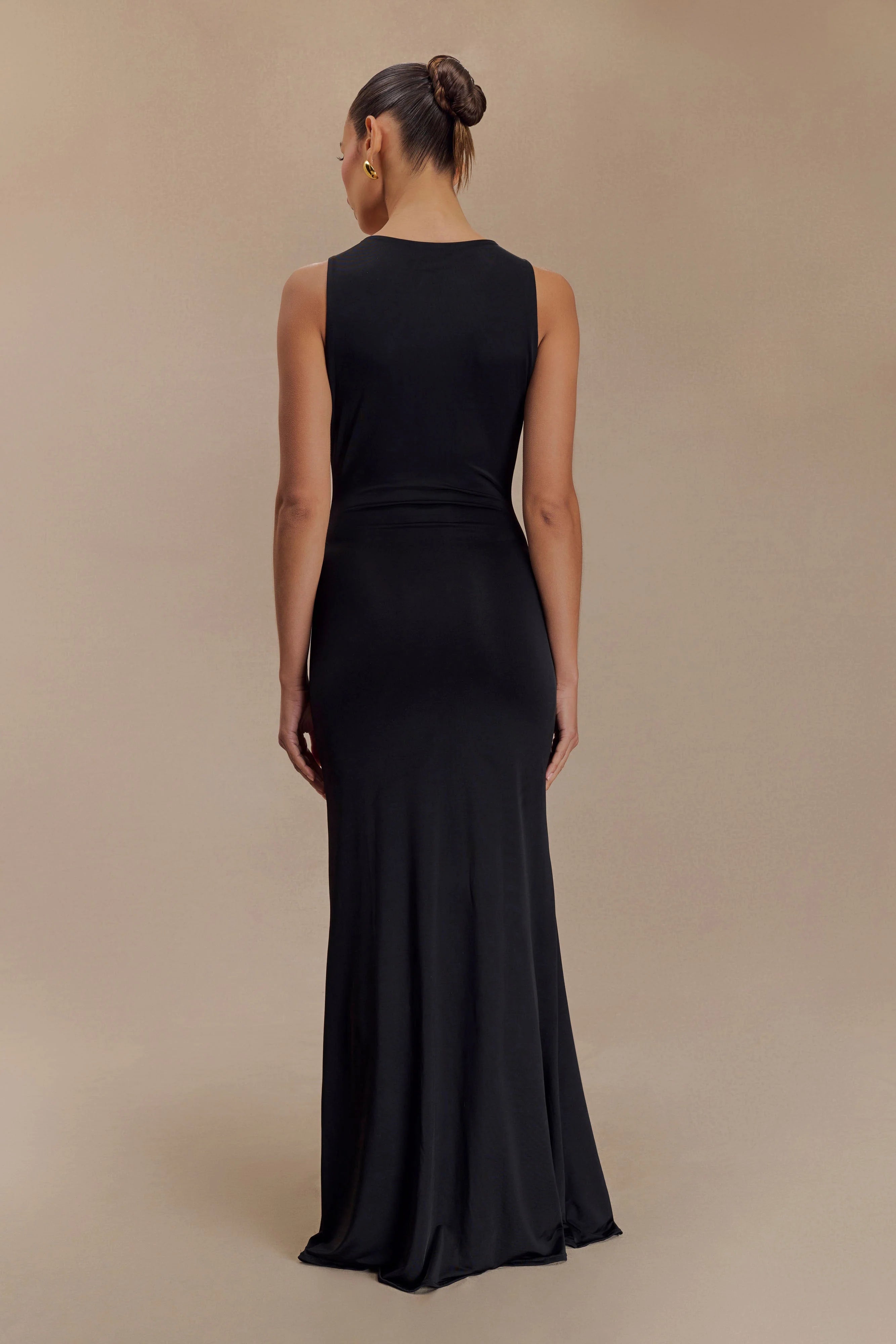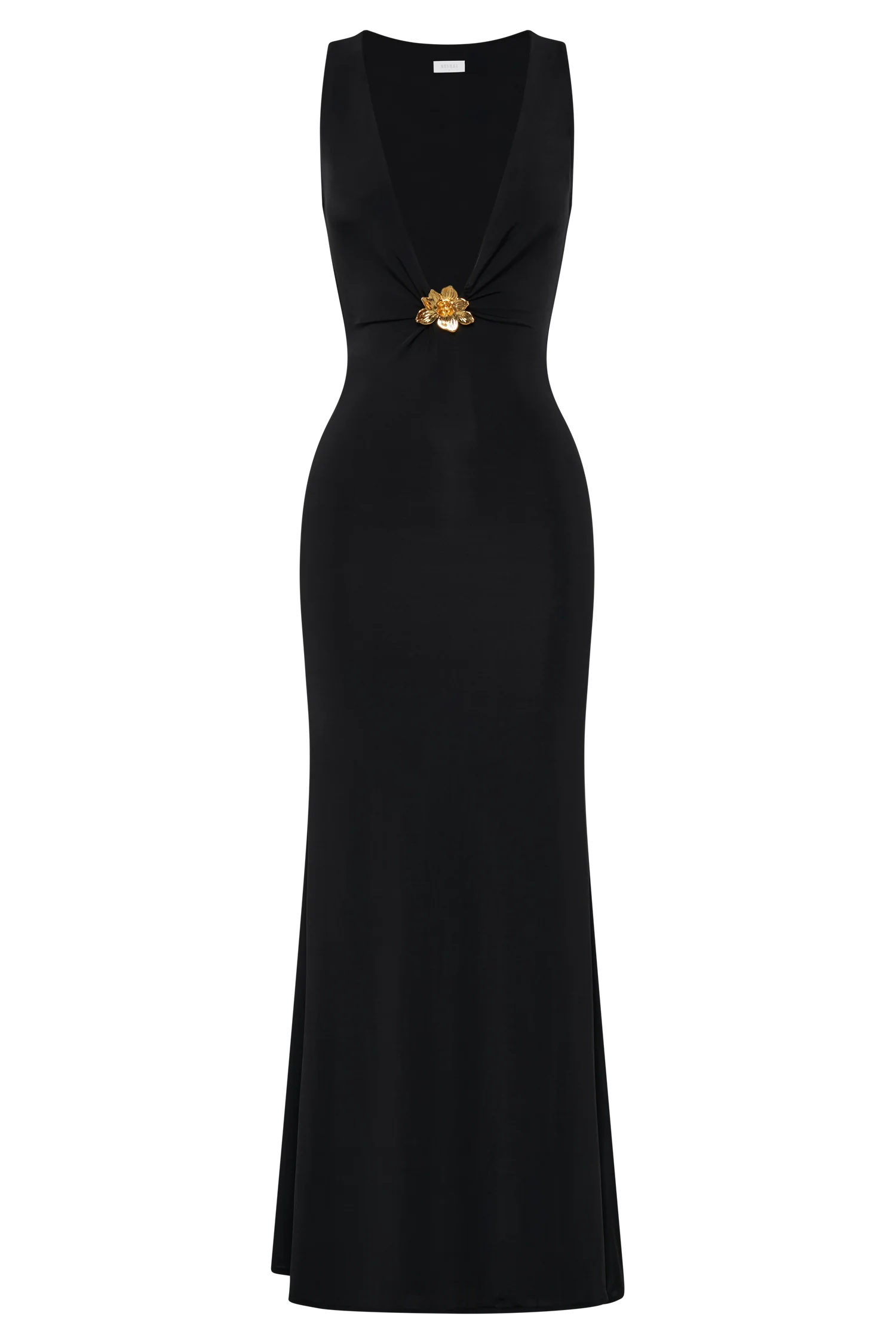 Make a statement with the BECK Plunge Maxi Dress, designed for those who dare to stand out. Featuring a deep V neckline and a sleeveless silhouette, this bodycon dress accentuates your curves while exuding confidence and sophistication. The fully lined design ensures comfort and a smooth fit, while the stunning fishtail hem shape adds an element of drama with every step. The maxi length creates an elegant flow, perfect for any occasion, from upscale events to intimate gatherings. Adorned with exquisite floral hardware at the centre front, this dress merges chic style with captivating details.