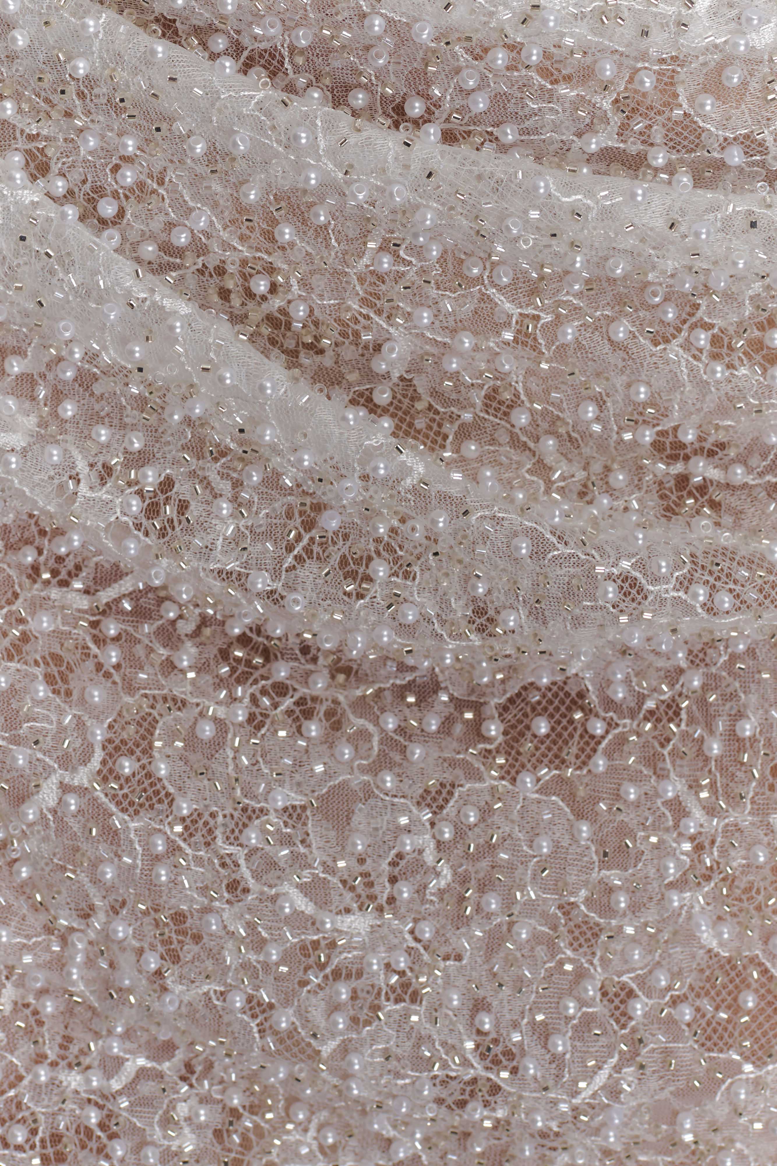 The CONNIE Beaded Bodycon Mini Dress is crafted for statement-making elegance. Designed with a V-detail neckline and versatile multi-wear straps—styled on or off the shoulder—it offers endless ways to make it your own. Gathering at the bust adds softness, while a boned waist panel sculpts the silhouette above a draped mini skirt. Cut from pearl-beaded fabrication with a semi-sheer finish and fully lined for comfort, Connie is your show-stopping choice for evenings that call for shimmer and sophistication.