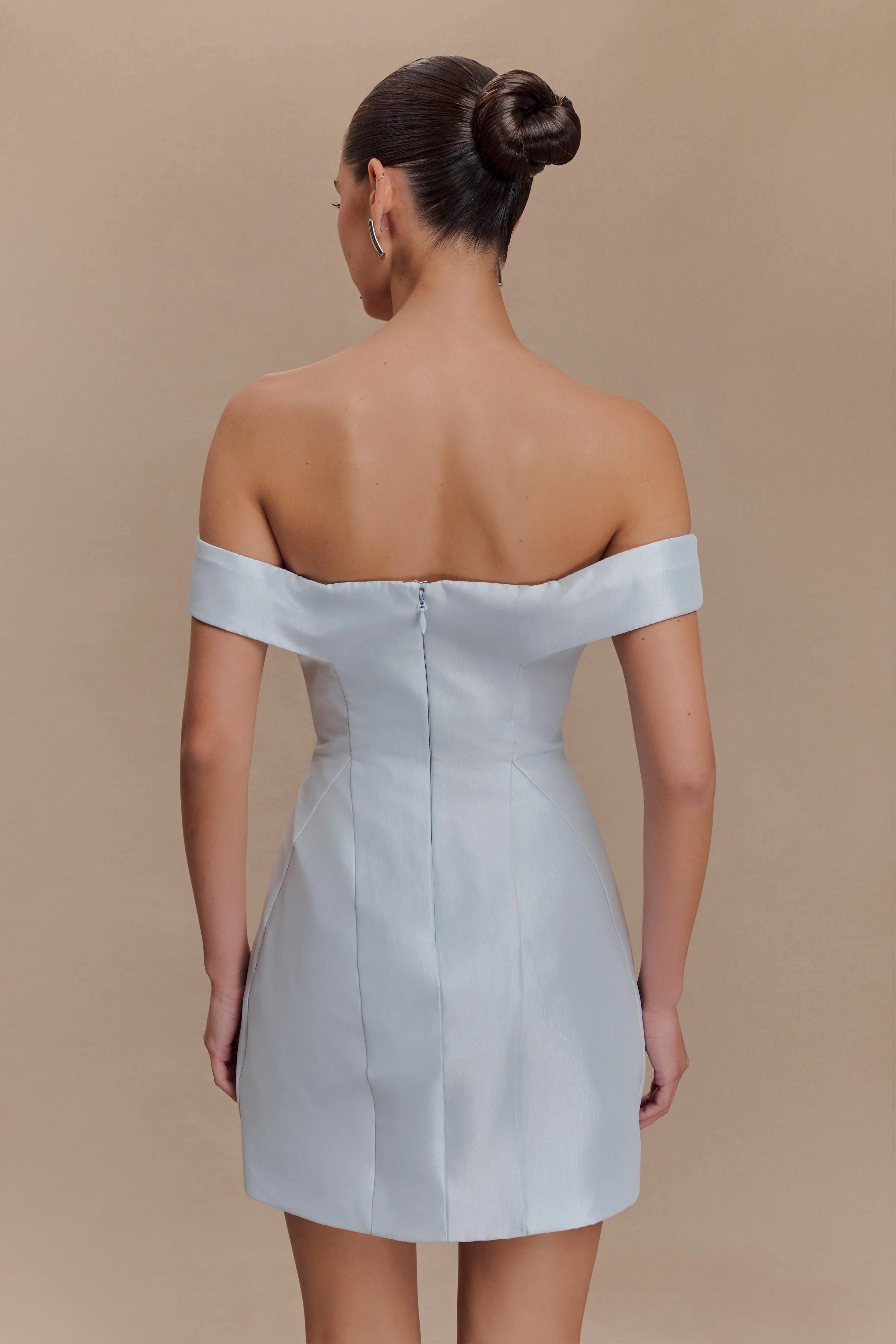 Step out in style with the DIANA Off Shoulders Mini Dress, a captivating blend of elegance and charm. Featuring a flattering Bardot neckline that beautifully highlights the shoulders, this dress boasts a fit-and-flare silhouette designed to accentuate your shape. The mini length adds a playful touch, while delicate panelling detail and structured bust cups provide a perfectly contoured fit. Finished with a centre-back zip for easy wear, this dress is your new go-to for any occasion that calls for a hint of romance and flair.
