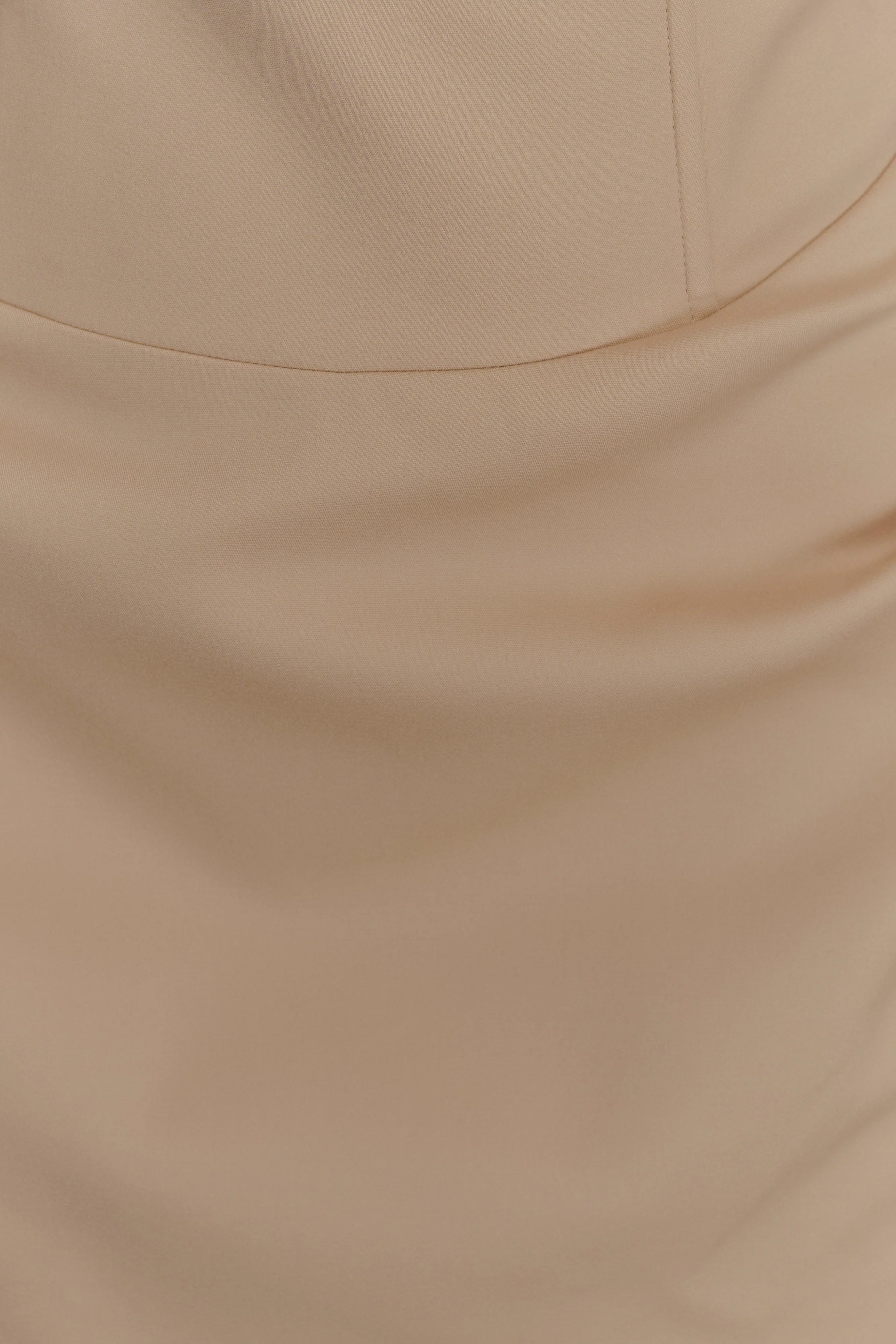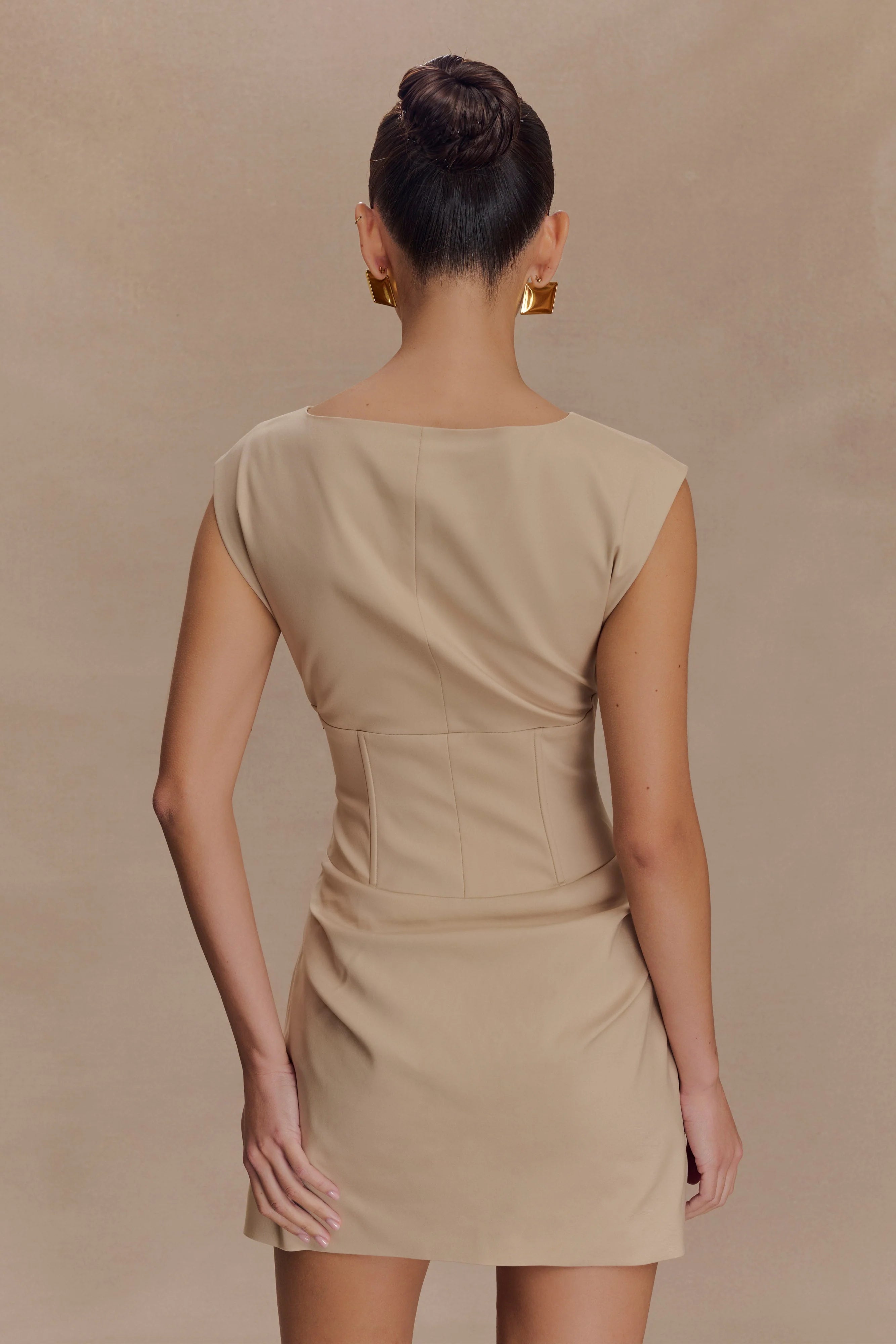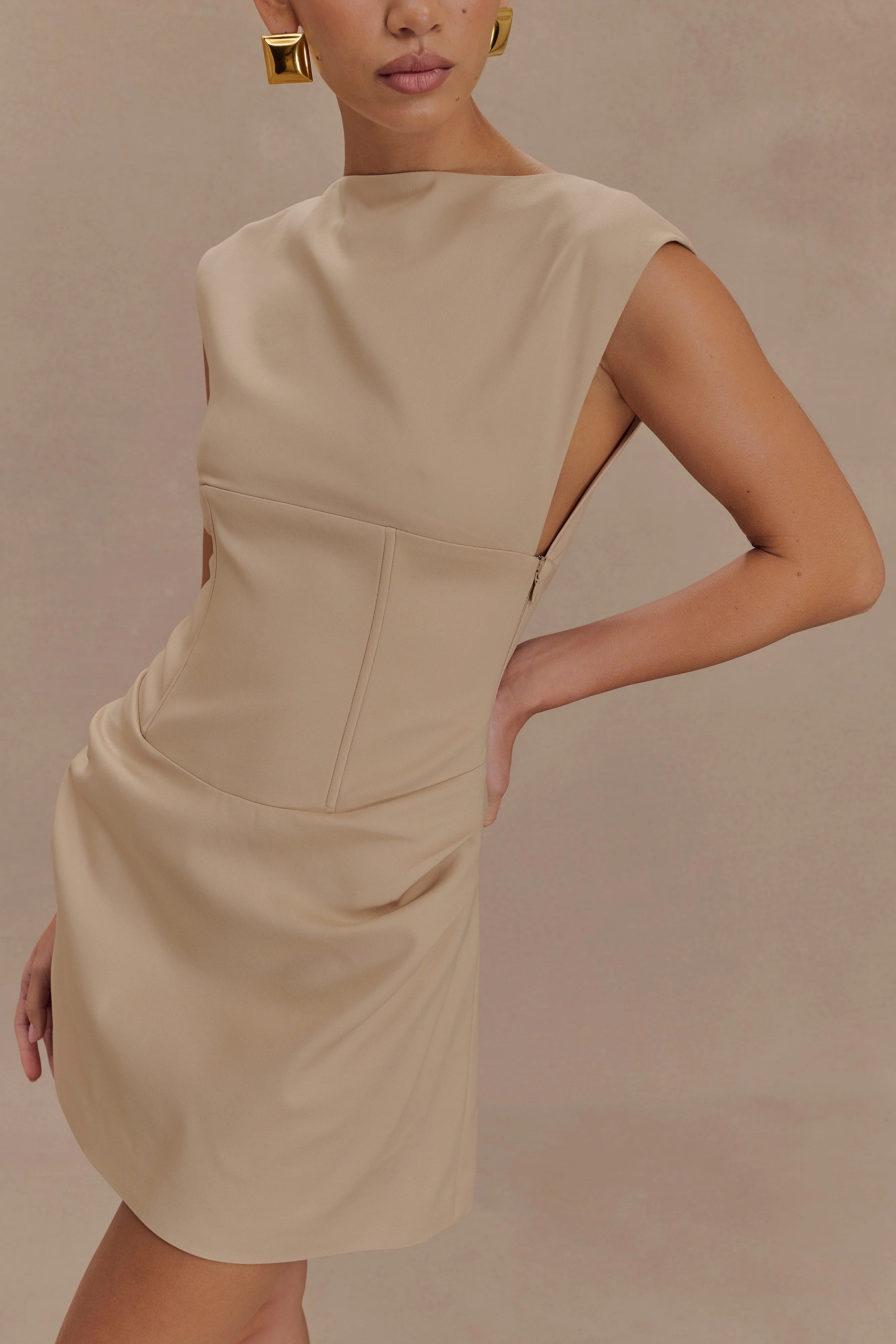 The DORIS Sleeveless Mini Dress is a fresh take on timeless tailoring, crafted for a flattering yet relaxed fit. Featuring a boat neckline and short raglan sleeves, this mini dress is defined by its underbust seam and curved low waist seam that softly shape the silhouette. Side gathers and shaping seams through the body enhance the fit, while the A-line cut adds fluidity and movement. Finished with an invisible centre back zip and unlined for a lightweight feel, this dress is the perfect blend of polish and comfort.