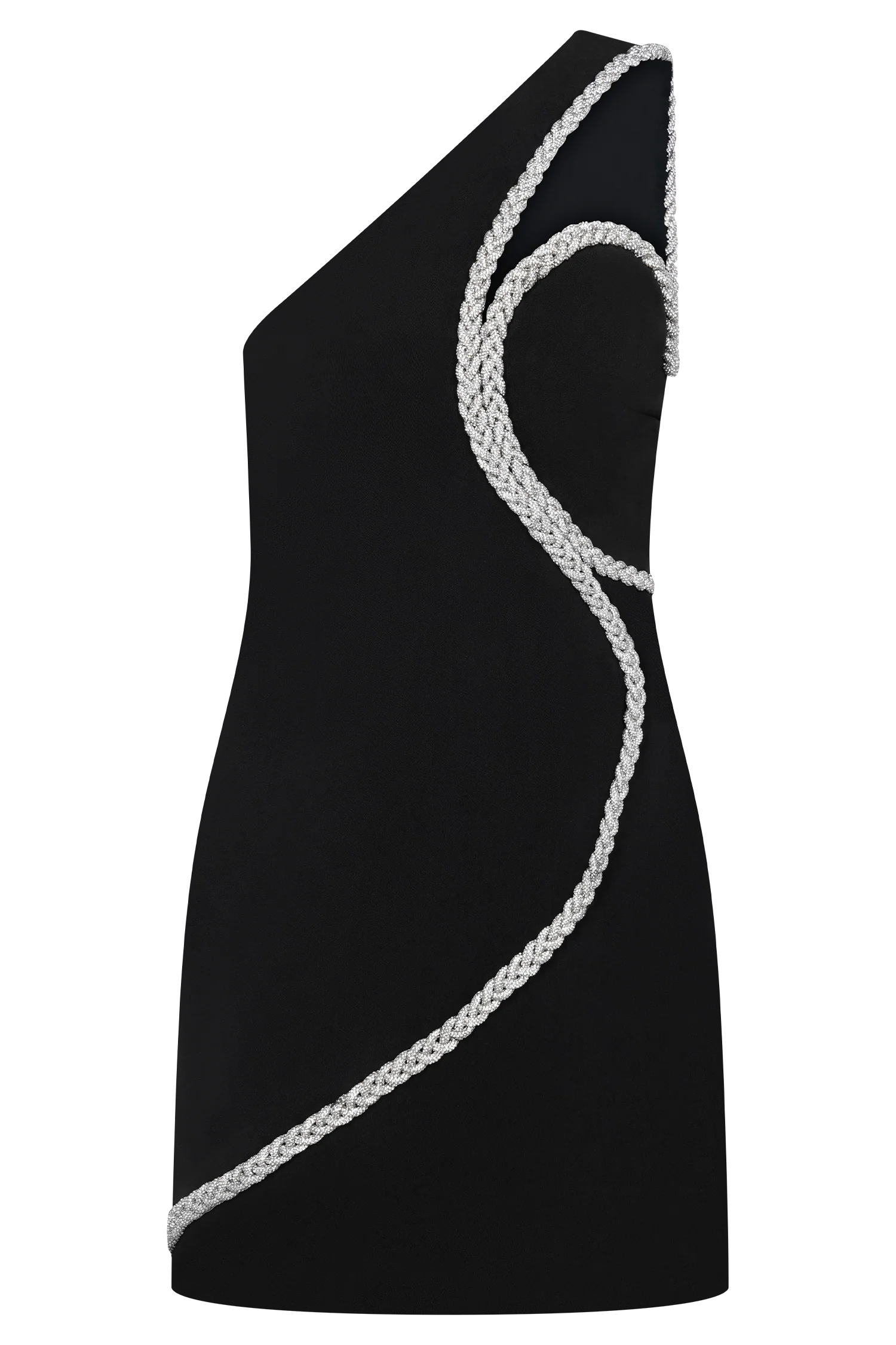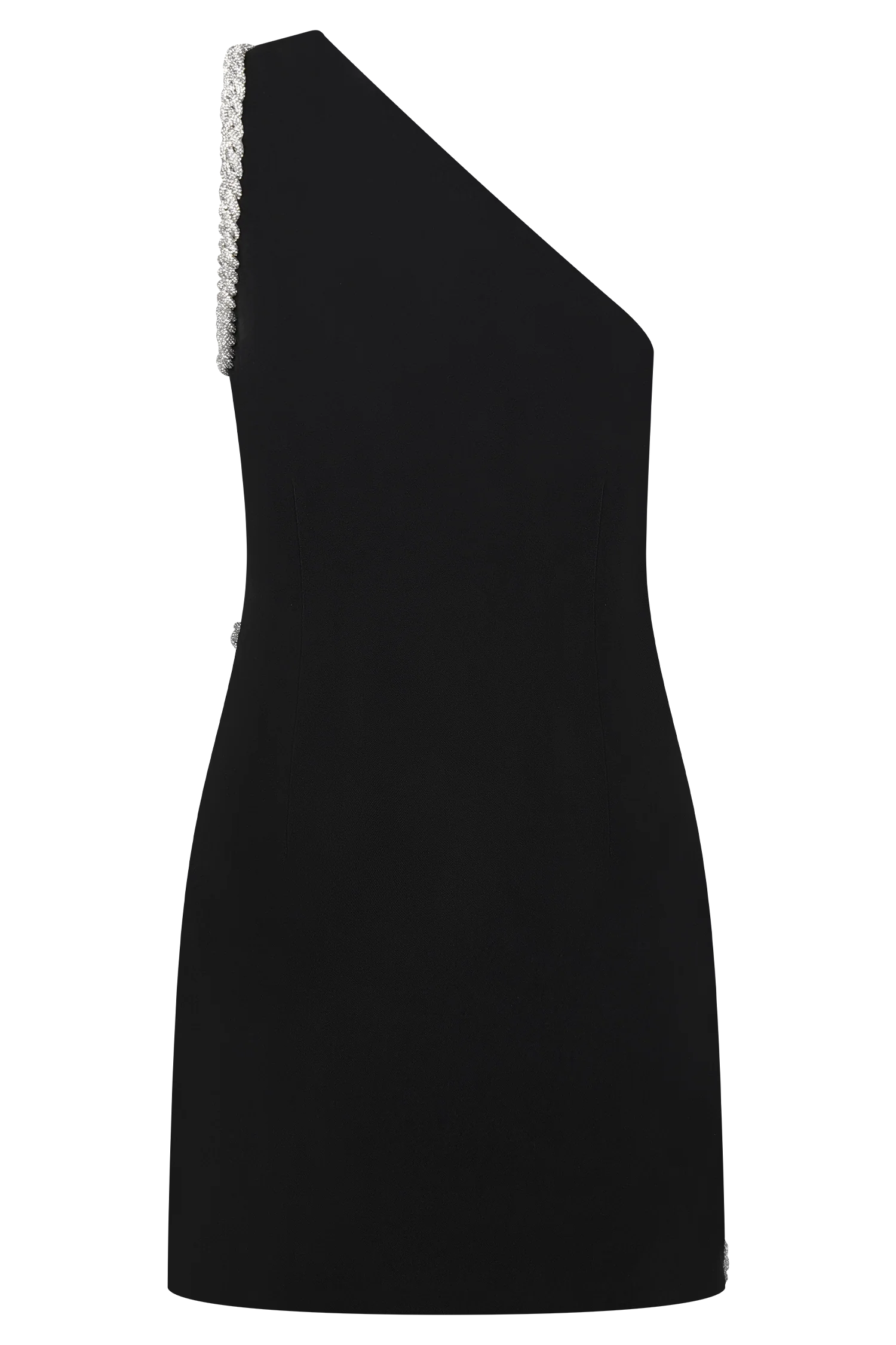 The ELEONORA Diamante Trim Mini Dress balances sleek minimalism with striking embellishment. Designed with a one-shoulder, asymmetric neckline, it’s framed by a silver diamante trim that catches the light with every movement. Fully lined for a smooth, structured fit and finished with an invisible zip, this mini-length silhouette delivers sophistication with a touch of sparkle — a modern expression of effortless evening glamour.