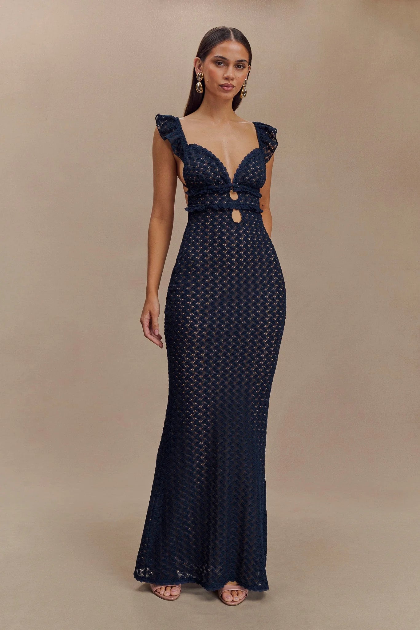 Indulge in the chic allure of the EZRA Knit Maxi Dress, a captivating piece that effortlessly blends comfort and style. The V neckline and flutter sleeves add a touch of femininity, creating a flattering silhouette. Self-ties at the back allow for a personalised fit, while the centre front keyhole adds a hint of intrigue. The dress boasts a patterned knit that exudes modern charm, and being unlined knitwear, it provides a breathable and relaxed feel. Elevate your fashion game with Ezra, a versatile maxi dress that embodies casual elegance and makes a bold statement with its unique design elements.