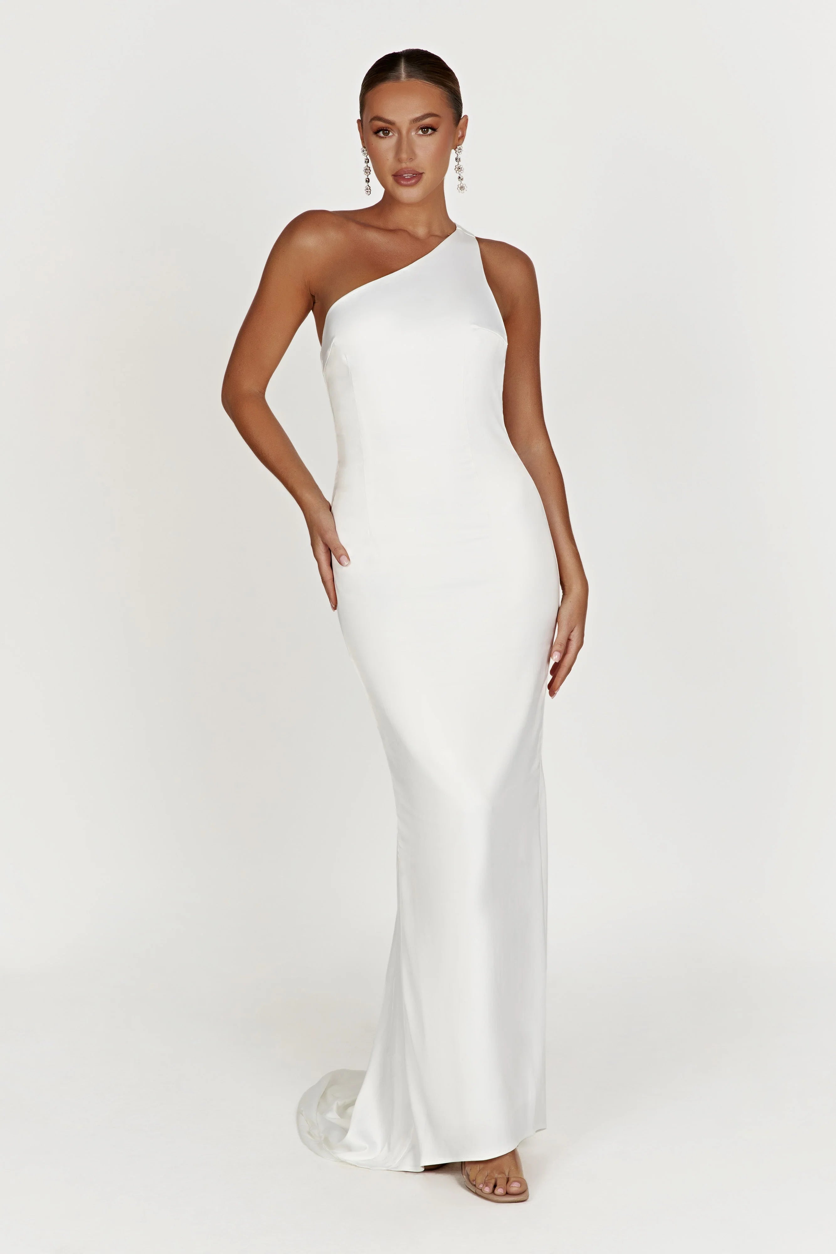 HARPER is an elegant and romantic gown featuring a one shoulder strap for a hint of seduction. The open back detailing adds intrigue, while the side zip closure ensures your comfortable in the most elegant way possible. This fully lined maxi is complete with a train that falls to the floor to add drama and glamour to your entrance.