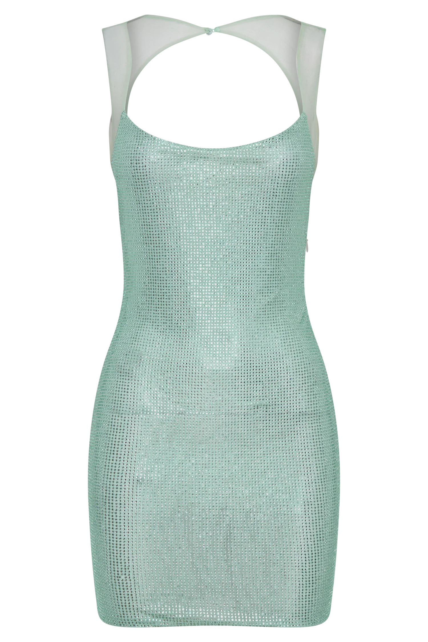 The JASMYN Hot Fix Mini Dress With Mesh Back is designed for high-impact moments. Featuring a scoop neckline and mesh straps, it’s finished with sheer back panels that fasten with a button and keyhole closure. The scratch mesh base is adorned with hotfix embellishments, catching the light for a statement sparkle. An open back detail and mesh lining ensure balance between allure and comfort. Cut to a mini length, this dress delivers modern glamour with a sleek finish.