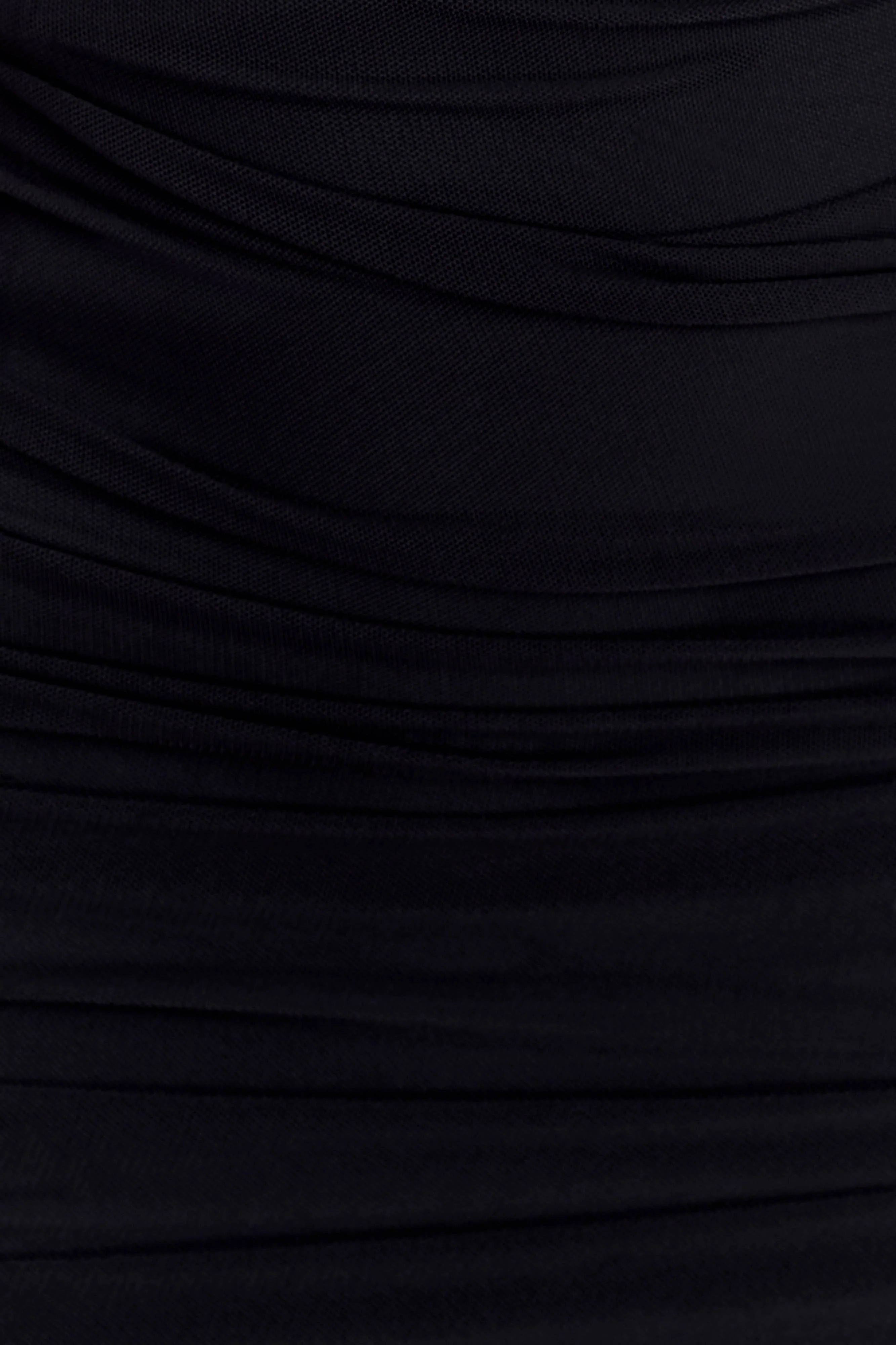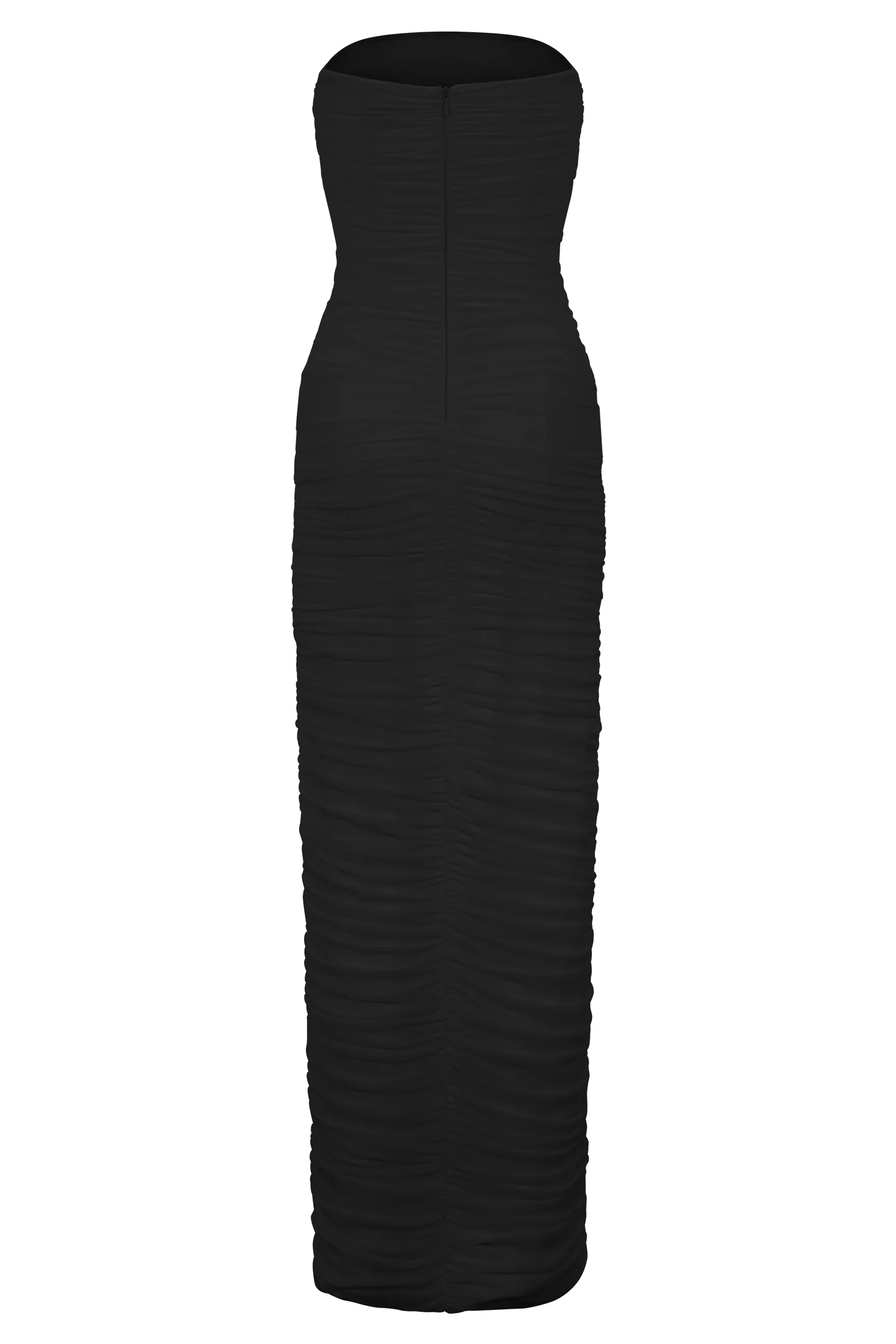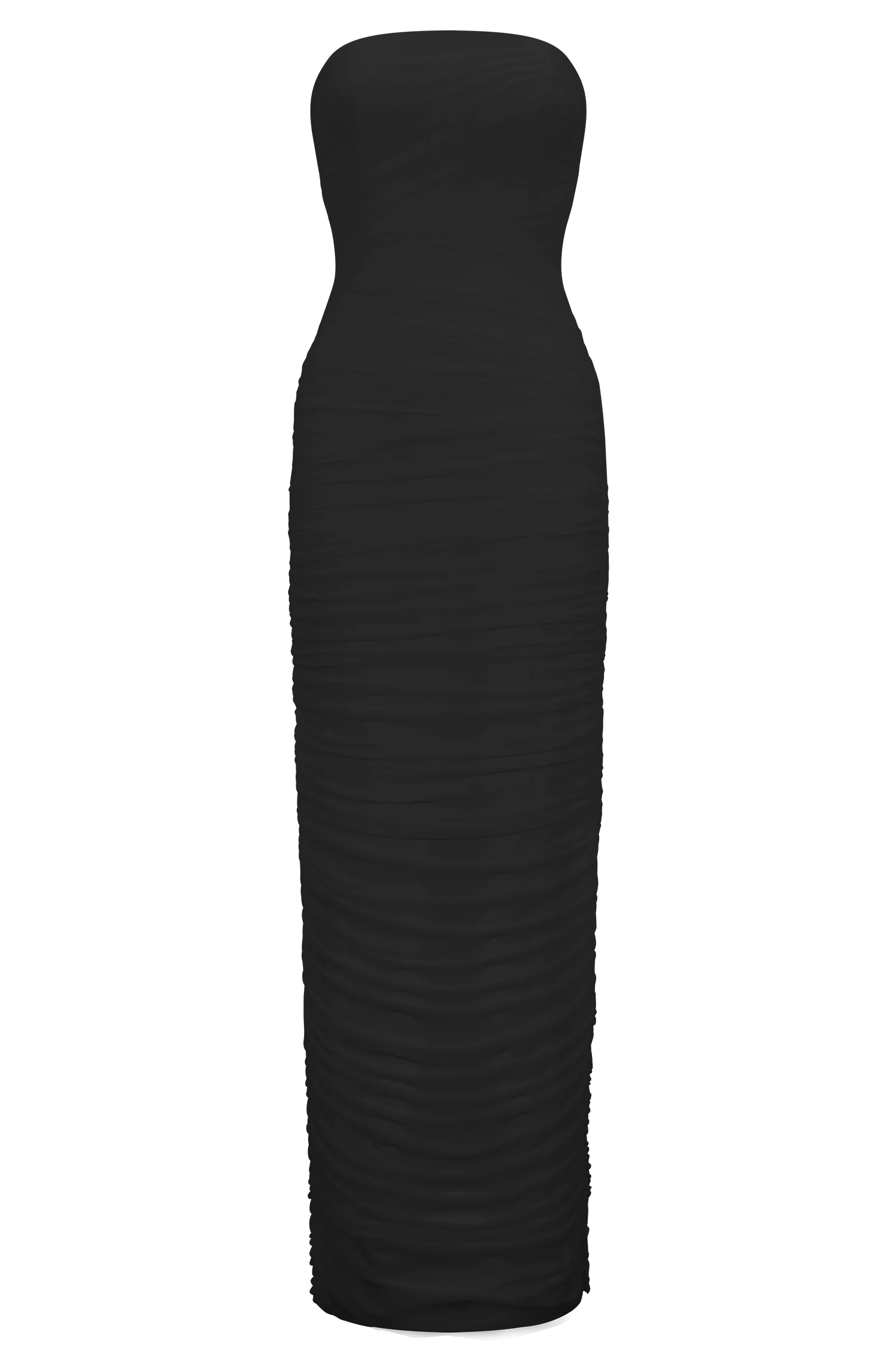 The JIANNA Strapless Mesh Maxi Dress is the embodiment of sleek, structured sensuality. Designed with a straight strapless neckline and fully gathered mesh detailing throughout, it creates a soft, contouring effect that flatters every curve. Internal boning provides subtle structure and support, while full lining ensures a smooth, sculpted finish. Completed with a back zipper closure and leg opening for ease of movement, this bodycon silhouette delivers timeless allure with modern refinement.