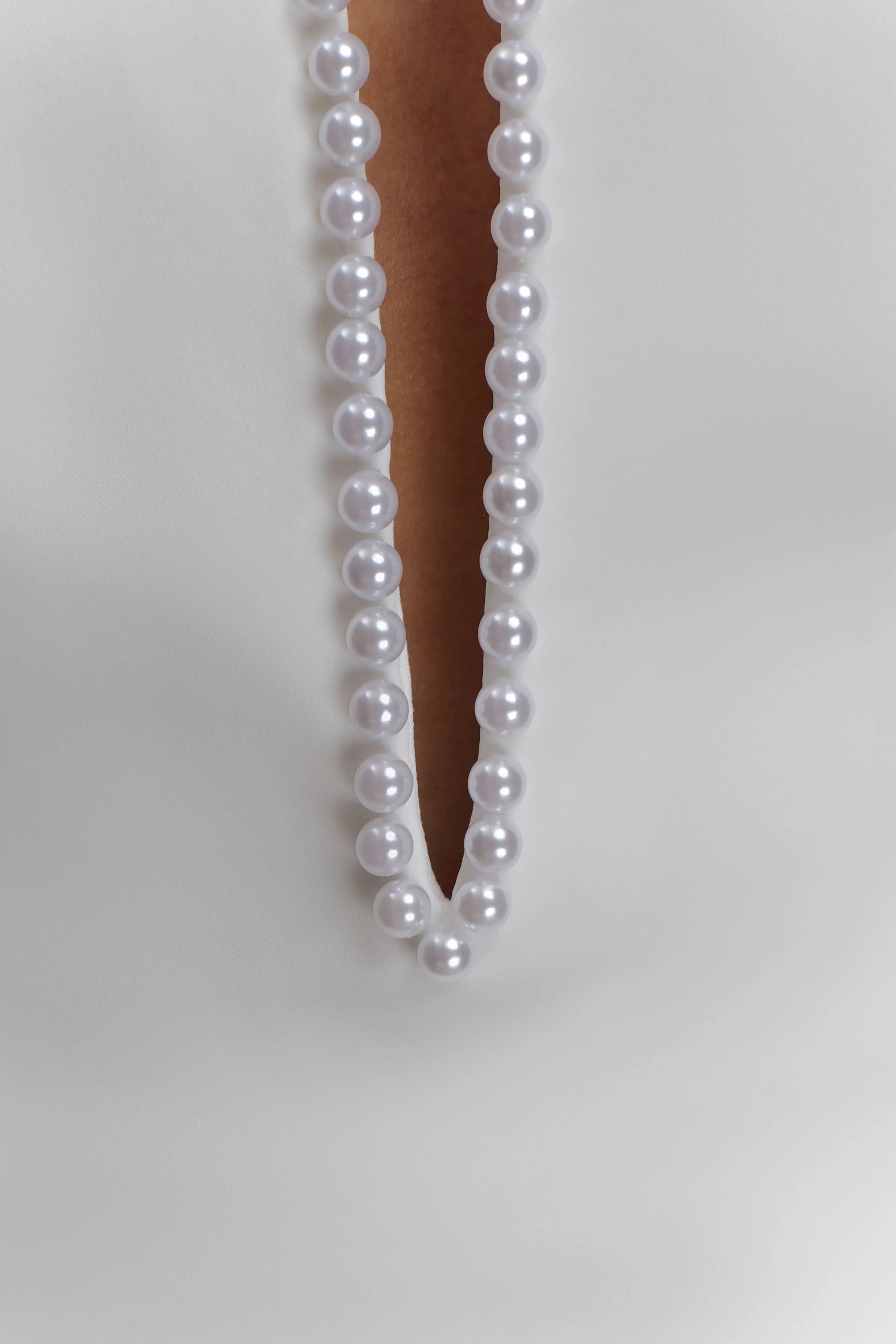 The KINGSLEY Beaded Neckline Mini Dress turns heads with its strappy plunge neckline, framed by a delicate pearl trim that adds a note of understated luxury. Designed with a fitted bodice to sculpt the silhouette, this mini is fully lined for comfort and finished with an invisible zip for a seamless fit. Equal parts playful and polished, this dress is made for evenings where every detail counts.