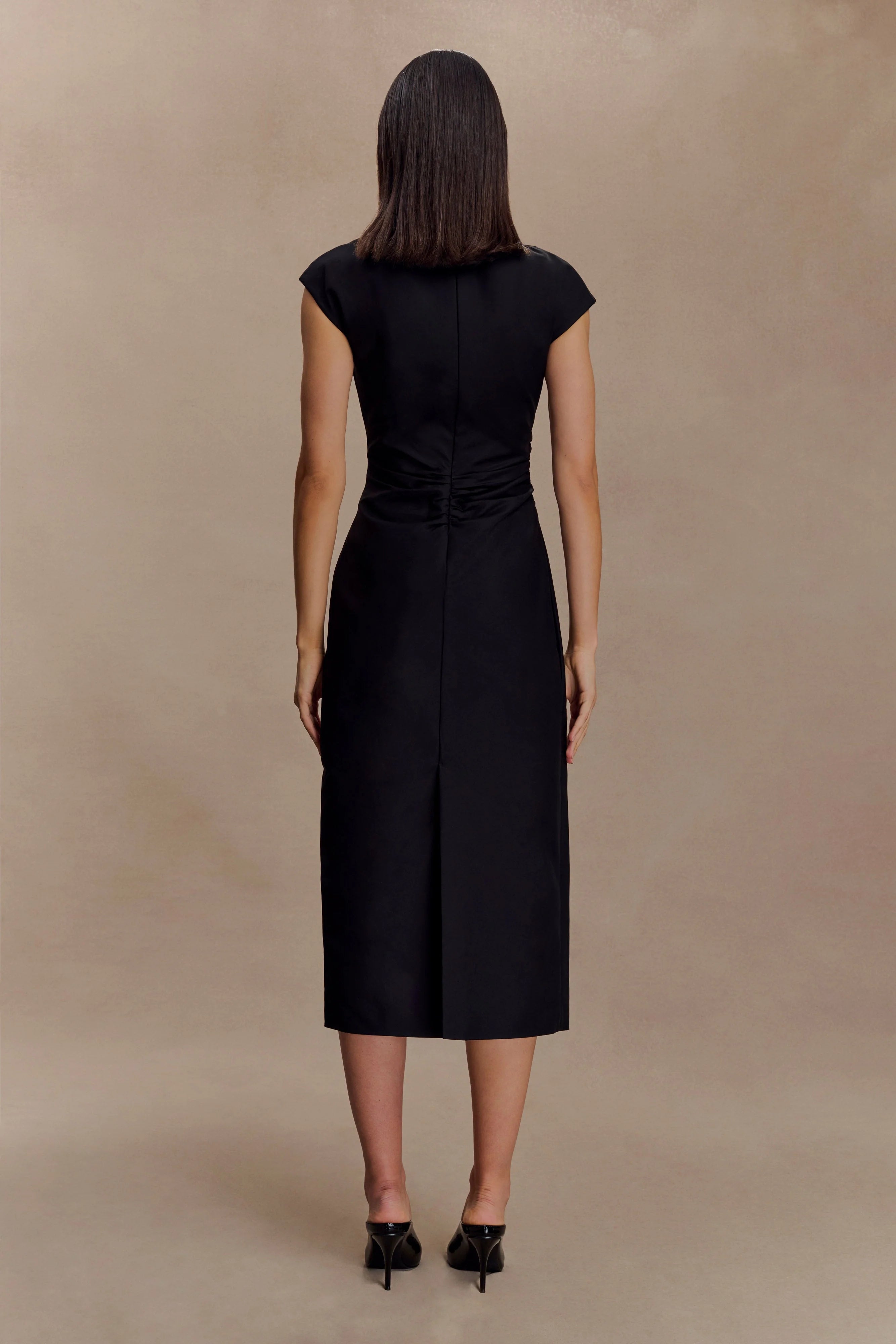 The LORENA Cotton Midi Dress is designed to flatter with its asymmetric high neckline and soft cap sleeves. Waist ruching adds subtle shaping through the bodice, while a centre back split allows for ease of movement in the clean midi-length silhouette. Fully lined for comfort and completed with an invisible centre back zip, this dress delivers understated sophistication—perfect for day-to-evening occasions.