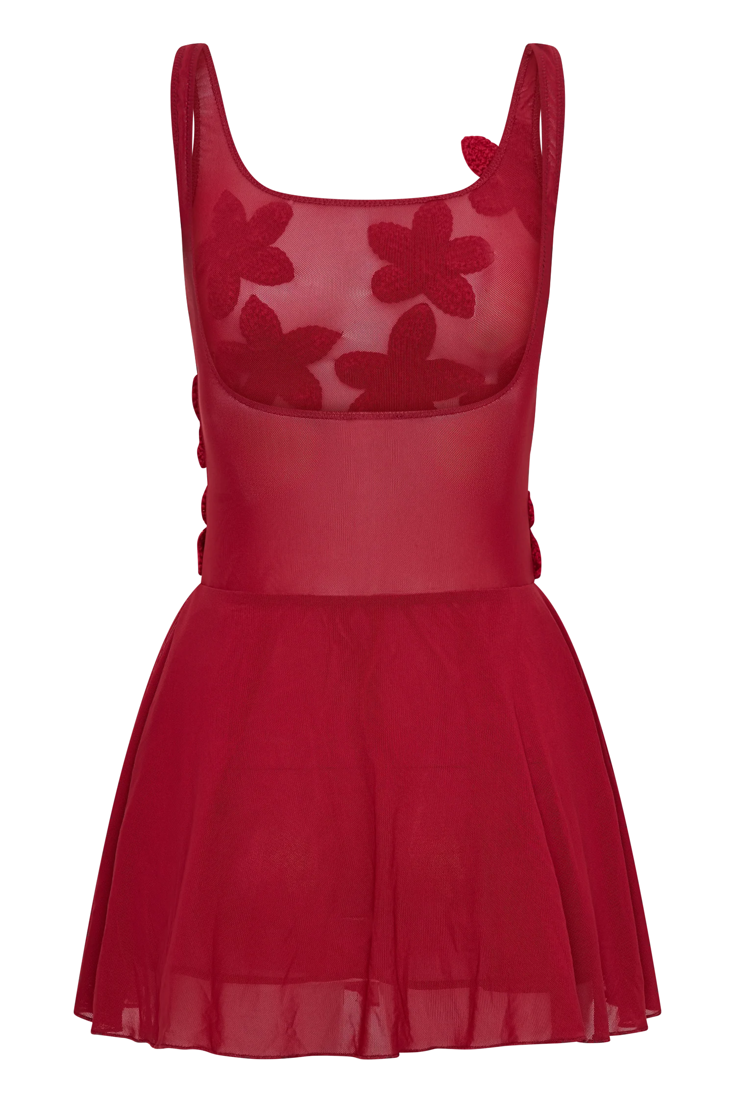 Step into elegance with the MELANIE Mesh Mini Dress with Flowers, a show-stopping piece that blends delicate charm with modern style. Featuring a flattering square neckline and a low back, this dress exudes sophistication from every angle. The fitted bodice, adorned with intricate crochet flower details, adds a touch of whimsy and femininity, while the airy mesh fabric creates a light, graceful look. Fully lined for comfort, the mini-length skirt provides just the right balance of allure and coverage.