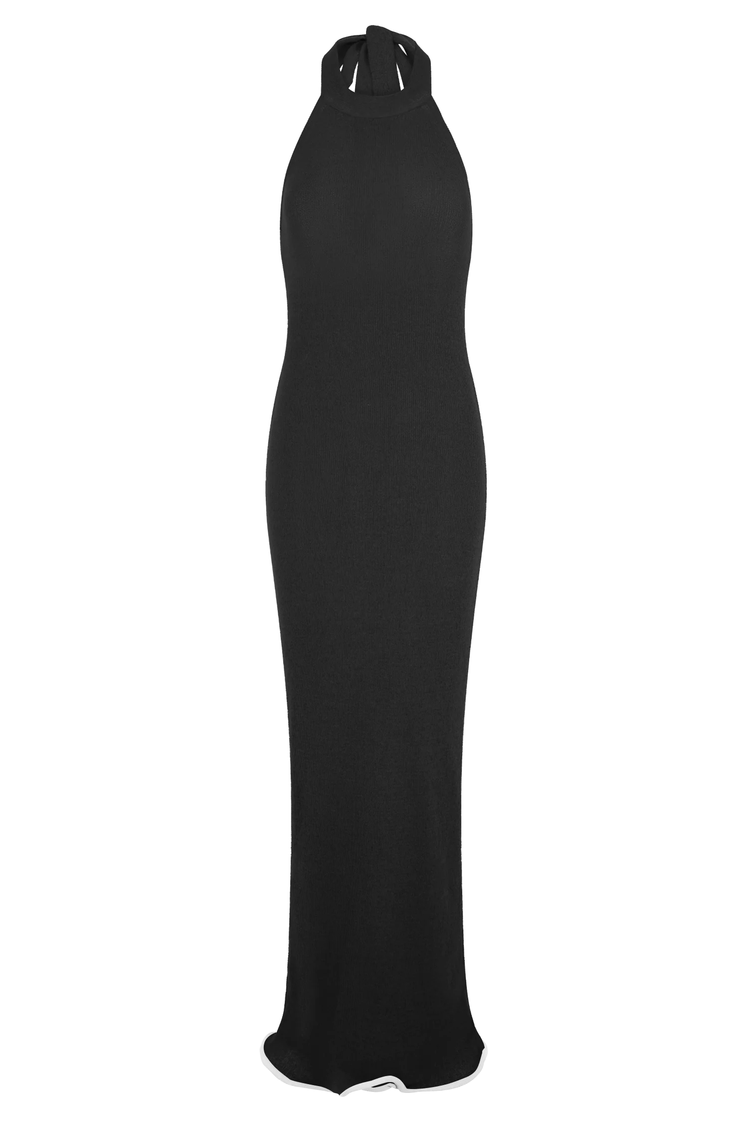 The MELODIE Halter Knit Maxi Dress is the perfect combination of sophisticated elegance and effortless charm. Featuring a flattering halter tie neckline, this dress offers a customisable fit that accentuates your shoulders and neckline. The open back adds a touch of allure, while the fitted silhouette hugs your curves in all the right places for a stunning look. With a maxi length, it exudes graceful movement, and the ripple hem detail adds an unexpected, chic touch.