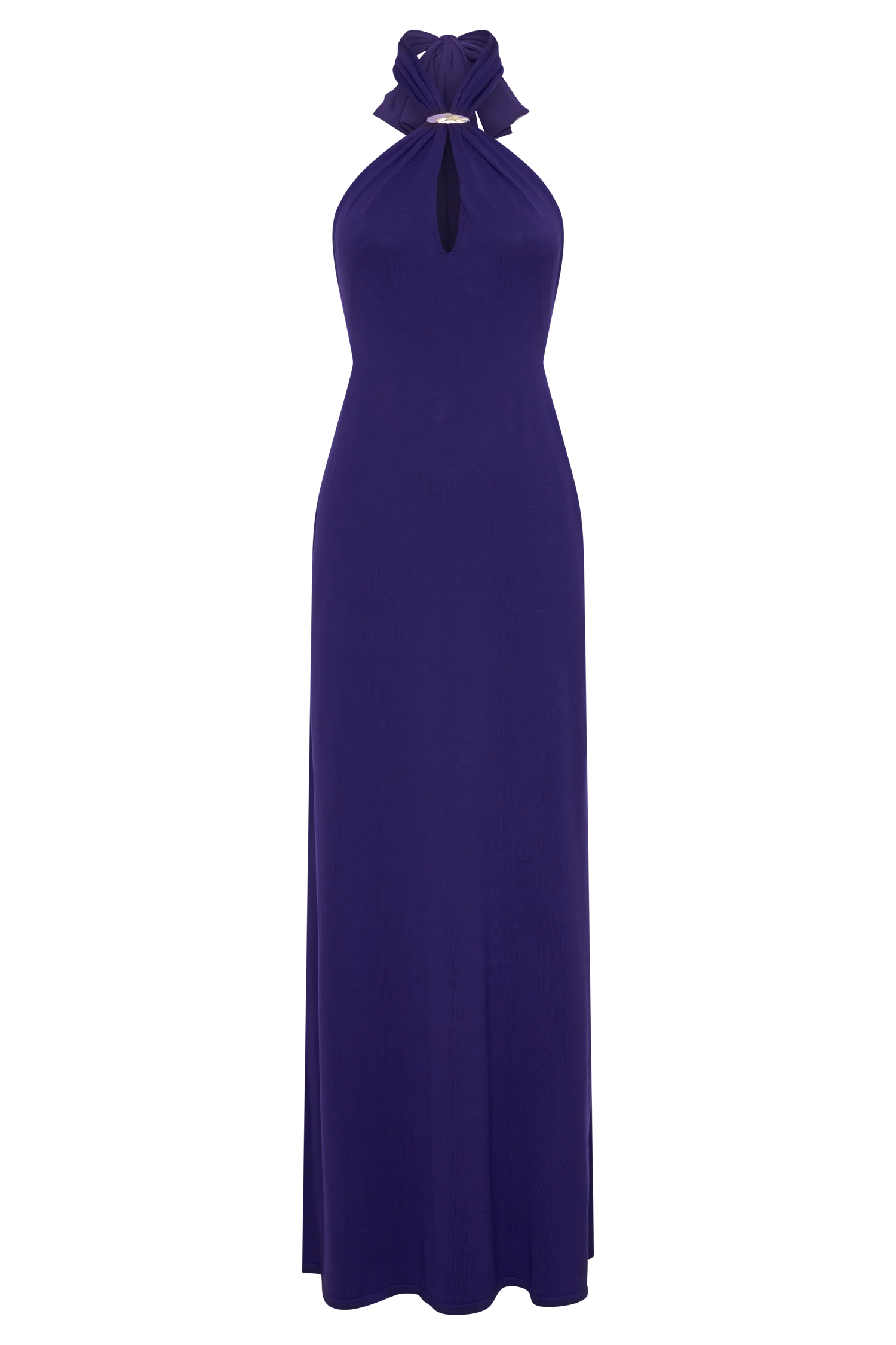 The OZIAS Halter Semi Sheer Knit Maxi Dress is designed to sculpt and flow in equal measure. Featuring an adjustable halter neckline with a keyhole cut-out, it’s elevated by a polished hardware accent at the front. A chiffon sash drapes from the back neck, complementing the open back for a fluid finish. Cut to a bodycon silhouette that falls into an A-line skirt shape, this dress balances sleek structure with graceful movement. Semi-sheer knit fabrication and maxi length complete the look with modern elegance.