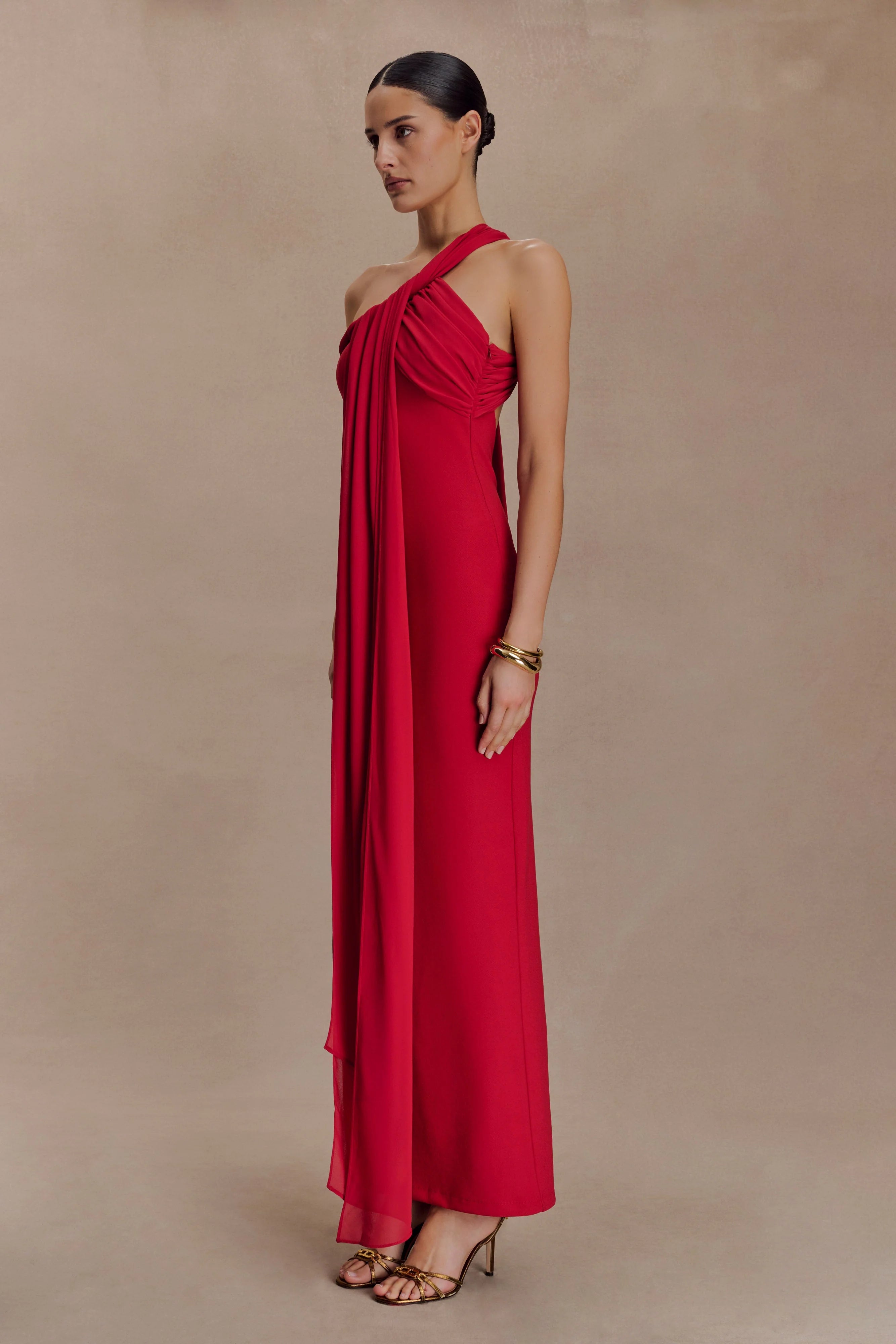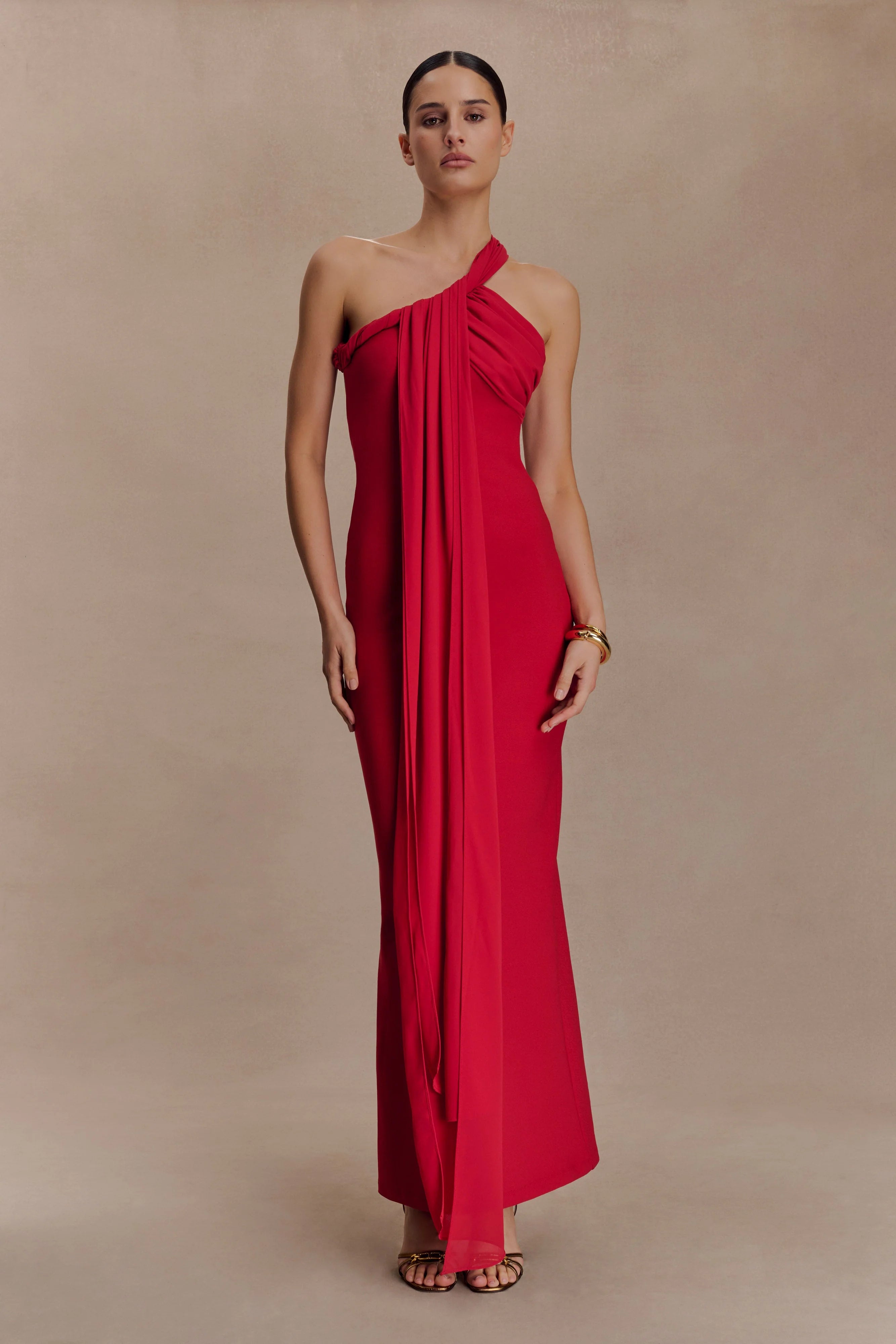 The PHILIPPA Knotted Crepe Maxi Dress is designed to flatter from every angle. Featuring a sleek one-shoulder neckline and a fitted bodice, it’s defined by a statement back tie detail and a low back cutout for a modern, unexpected twist. Fully lined for a smooth fit, this dress offers a clean, structured silhouette without padding—perfect for evenings that call for understated drama and timeless sophistication.