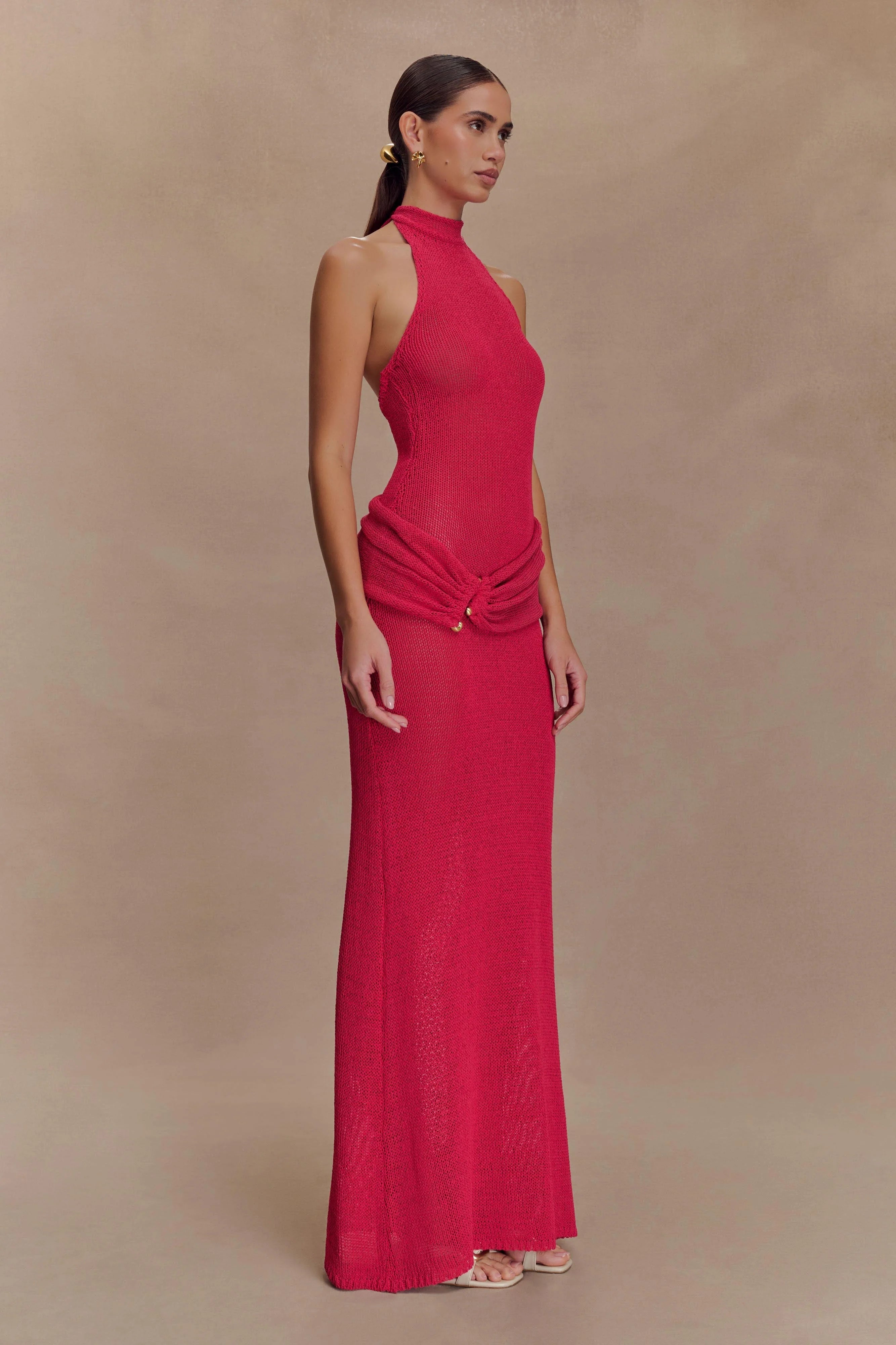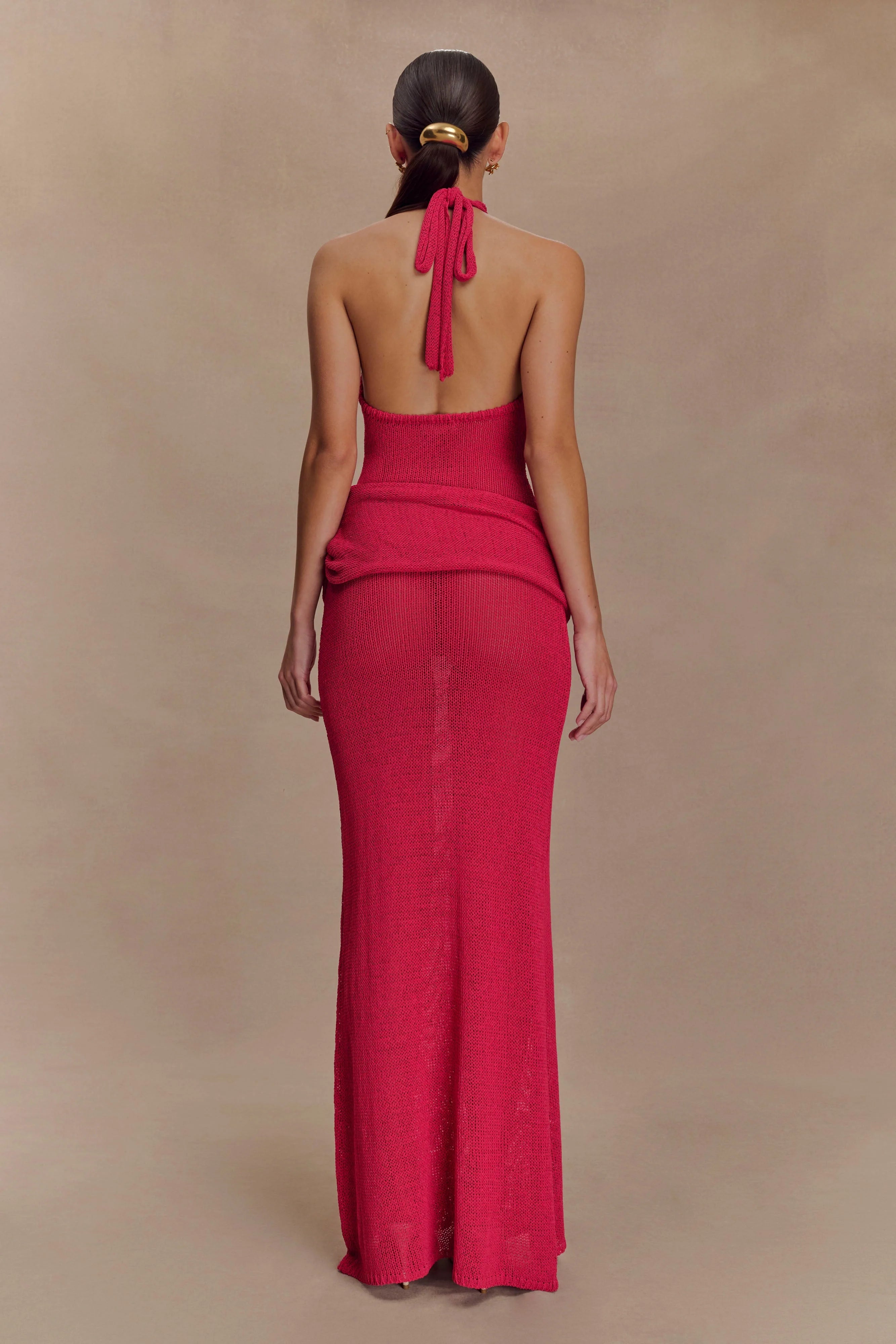 The REECE Halter Knit Maxi Dress is a modern silhouette designed with effortless elegance in mind. Featuring a halter neckline and open back, this unlined knit dress contours the body with ease while a ruched hip overlay adds soft definition and movement. Finished with custom hardware and a floor-grazing hem, this dress is perfect for warm-weather evenings, coastal escapes, or any occasion that calls for sleek, understated impact.