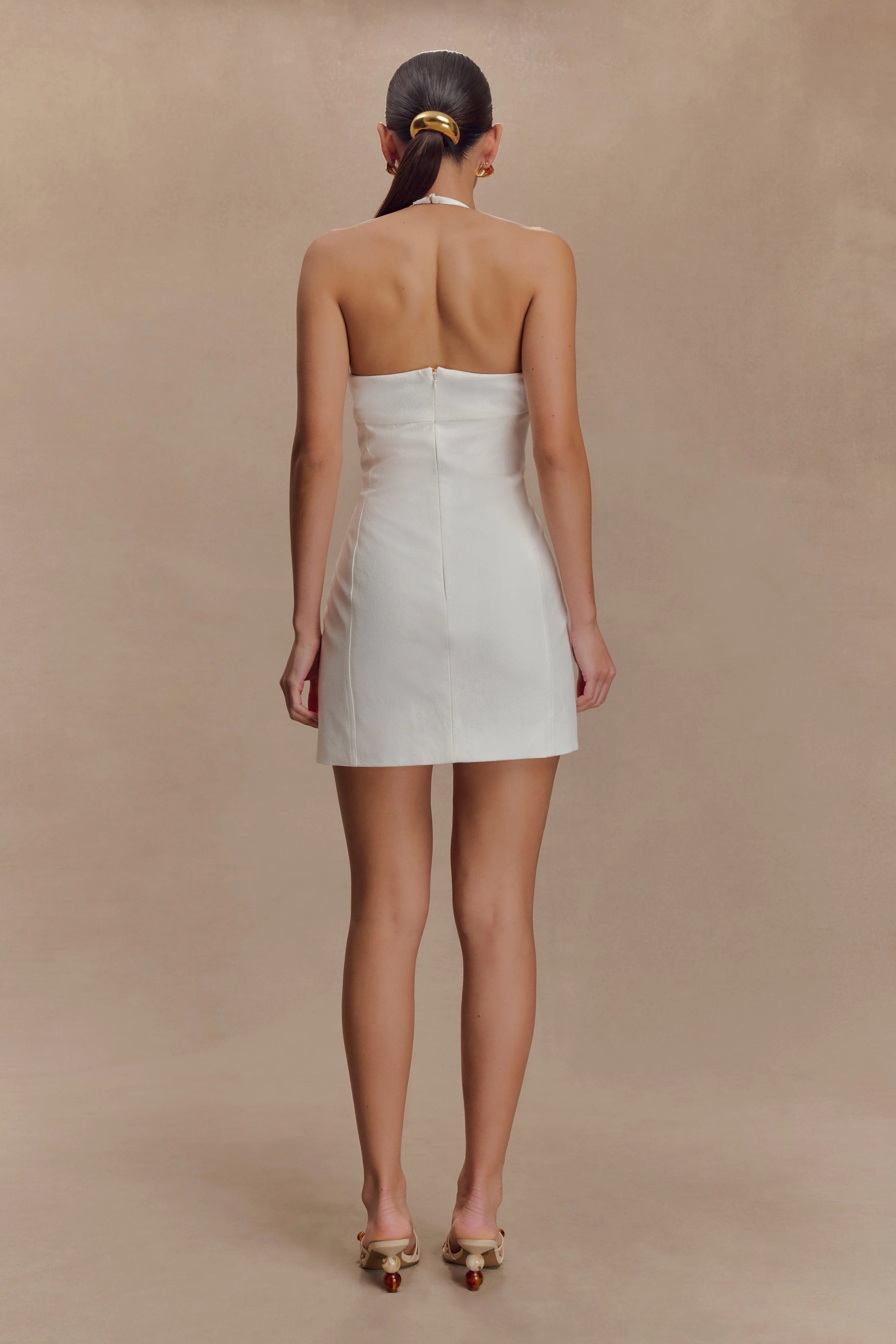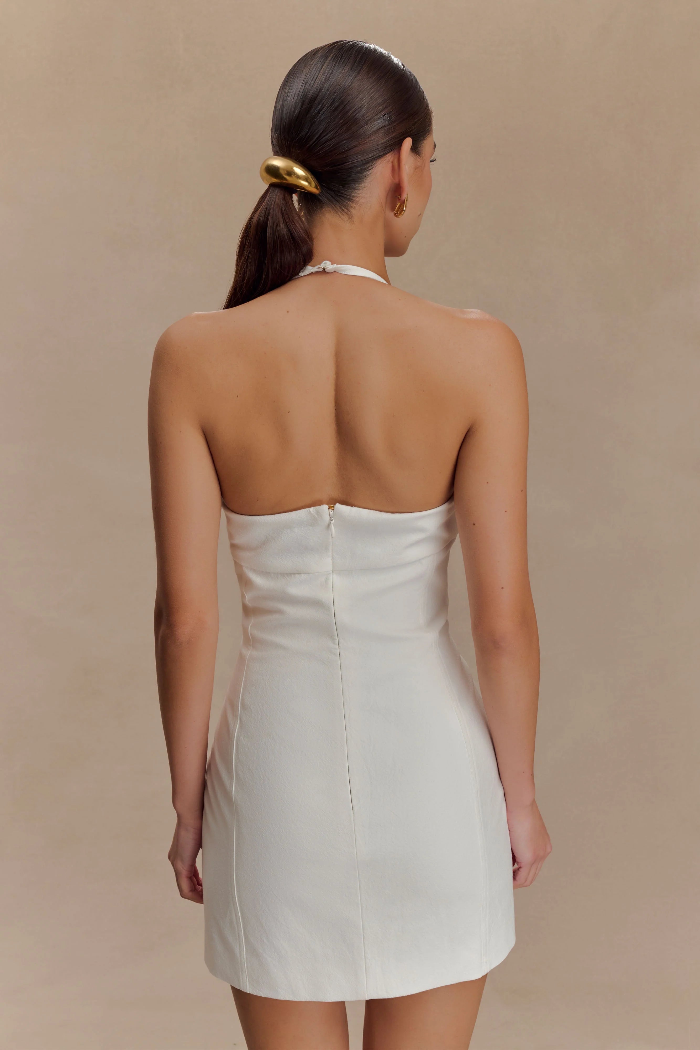 The REYES Cotton Floral Mini Dress brings playful romance to summer dressing. Crafted with a halter neckline, this mini features a statement floral applique and delicate bead accents that draw the eye upward. A ruched centre front seam sculpts the bust, while princess seams through the front and back flatter your silhouette. With an easy centre back zip and breezy unlined cotton feel, this dress is made for sunshine moments—from garden parties to long lunches.