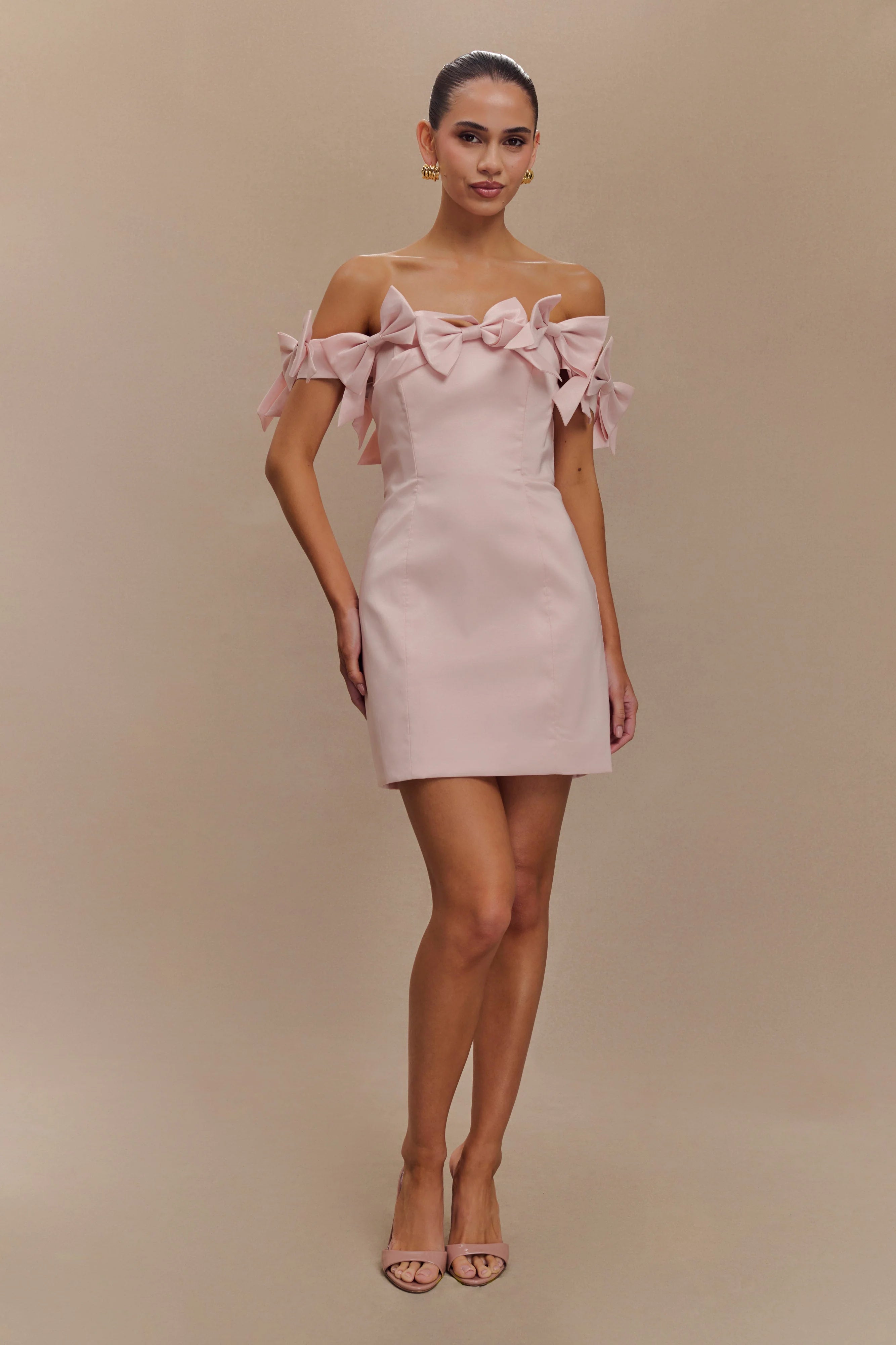 The ROSE Strapless Bow Mini Dress is a flirty and feminine piece designed to turn heads. Featuring a flattering Bardot neckline, this dress exudes elegant charm with its playful bow detail along the neckline. The A-line silhouette offers a flattering fit, while the mini length adds a youthful and fun vibe to the design. With a centre-back zip for easy wear, this fully lined dress combines comfort and style, making it the perfect choice for a night out or a special occasion. Whether paired with heels or flats, this dress promises a chic and effortless look.
