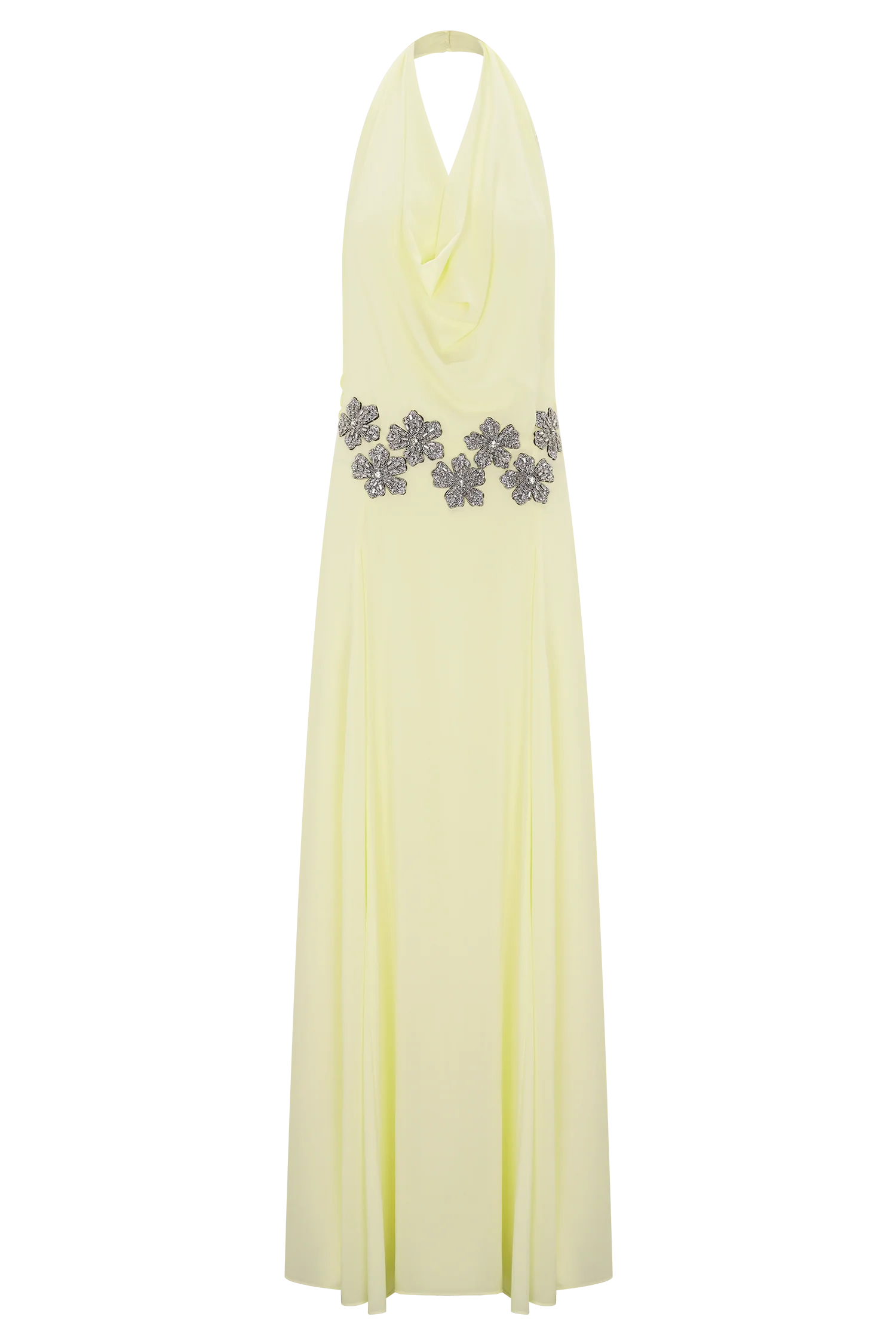The SANTAL Floral Chiffon Halter Maxi Dress is an ethereal silhouette designed for movement and ease. Featuring a soft cowl neckline with a halter neck secured by three buttons, it drapes effortlessly across the body for a graceful finish. Diamante trims at the front waist add a touch of sparkle, while a detachable scarf at the neck offers versatile styling options. Fully lined for comfort and cut to a maxi length, this dress embodies timeless femininity with a modern edge.