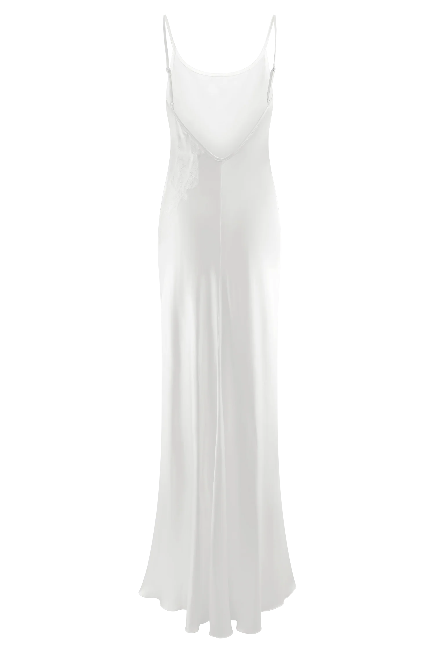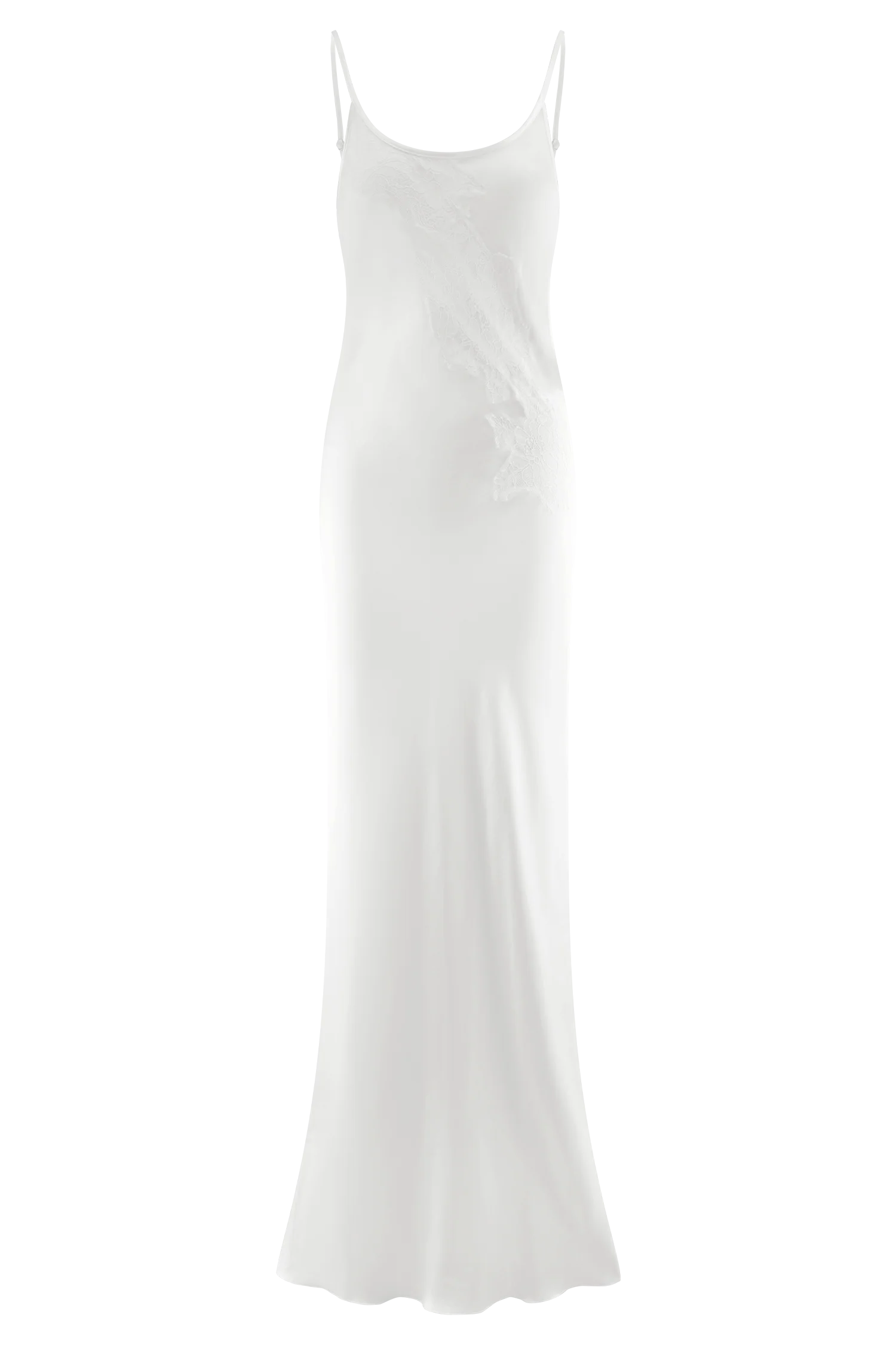 The SAYLOR Satin Slip Maxi Dress is a vision of understated elegance. Designed with a soft scoop neckline and a sultry low back, this dress drapes beautifully over the body for a sleek, feminine silhouette. Delicate lace detailing adds a touch of romance, while the bound neckline and adjustable straps ensure a perfect fit. Falling to a fluid maxi length and left unlined for a lightweight, natural feel, this dress is perfect for intimate evenings, special occasions, or effortlessly chic bridal moments.
