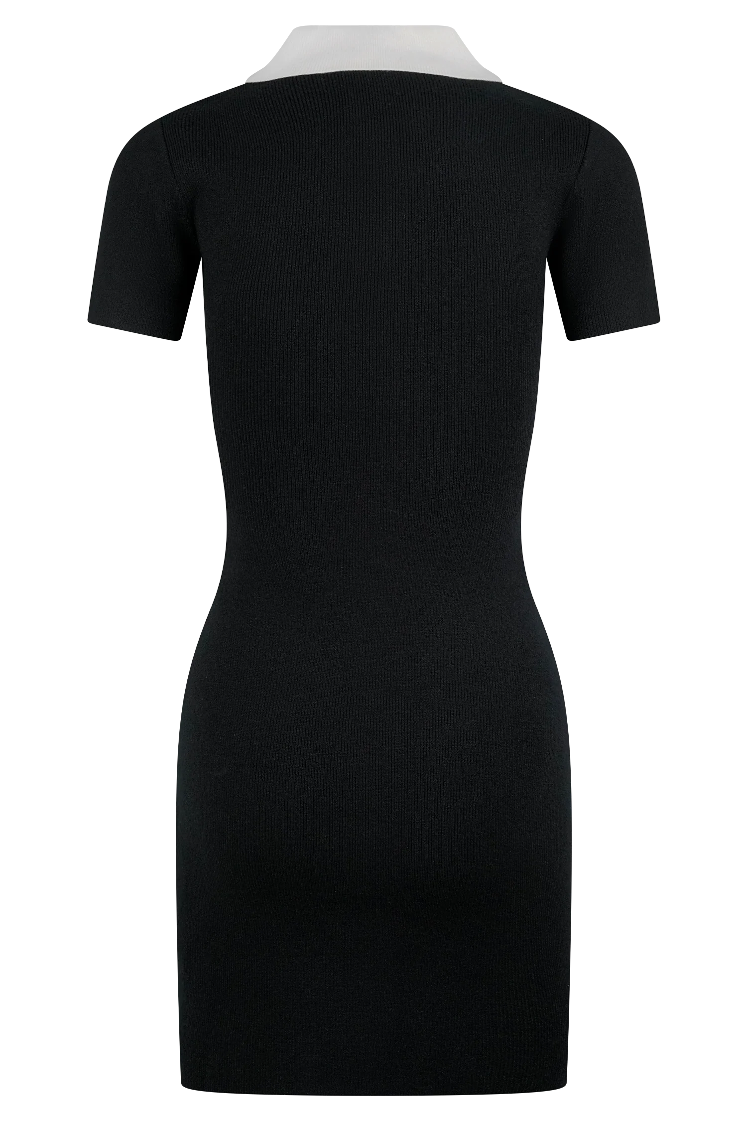Elevate your style with the SEEMA Contrast Mini Dress, a perfect blend of sophistication and modern charm. Featuring a classic collared neckline and short sleeves, this mini-length design is both polished and playful. The contrast center-front placket, collar, and pockets add striking definition, while gold non-functional buttons lend a touch of elegance. Crafted from a soft knit fabric, the Seema dress is as comfortable as it is stylish, making it a versatile choice for brunches, meetings, or evening outings.