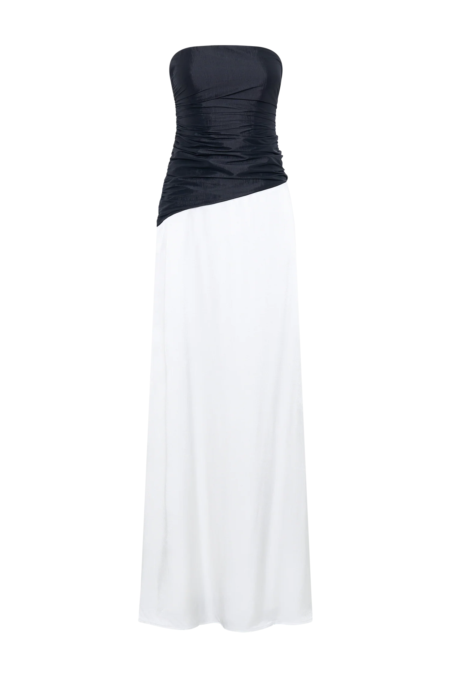 The SERENA Strapless Taffeta Maxi Dress exudes elegance and allure with every detail. This stunning strapless design features a corseted lace-up back and a ruched fitted bodice that enhances your silhouette, offering both structure and a touch of drama. The contrast satin lower skirt adds a luxurious finish, flowing gracefully to create a striking effect. With a discreet side zip and full lining for comfort, this dress is crafted to ensure you stand out at any special occasion.