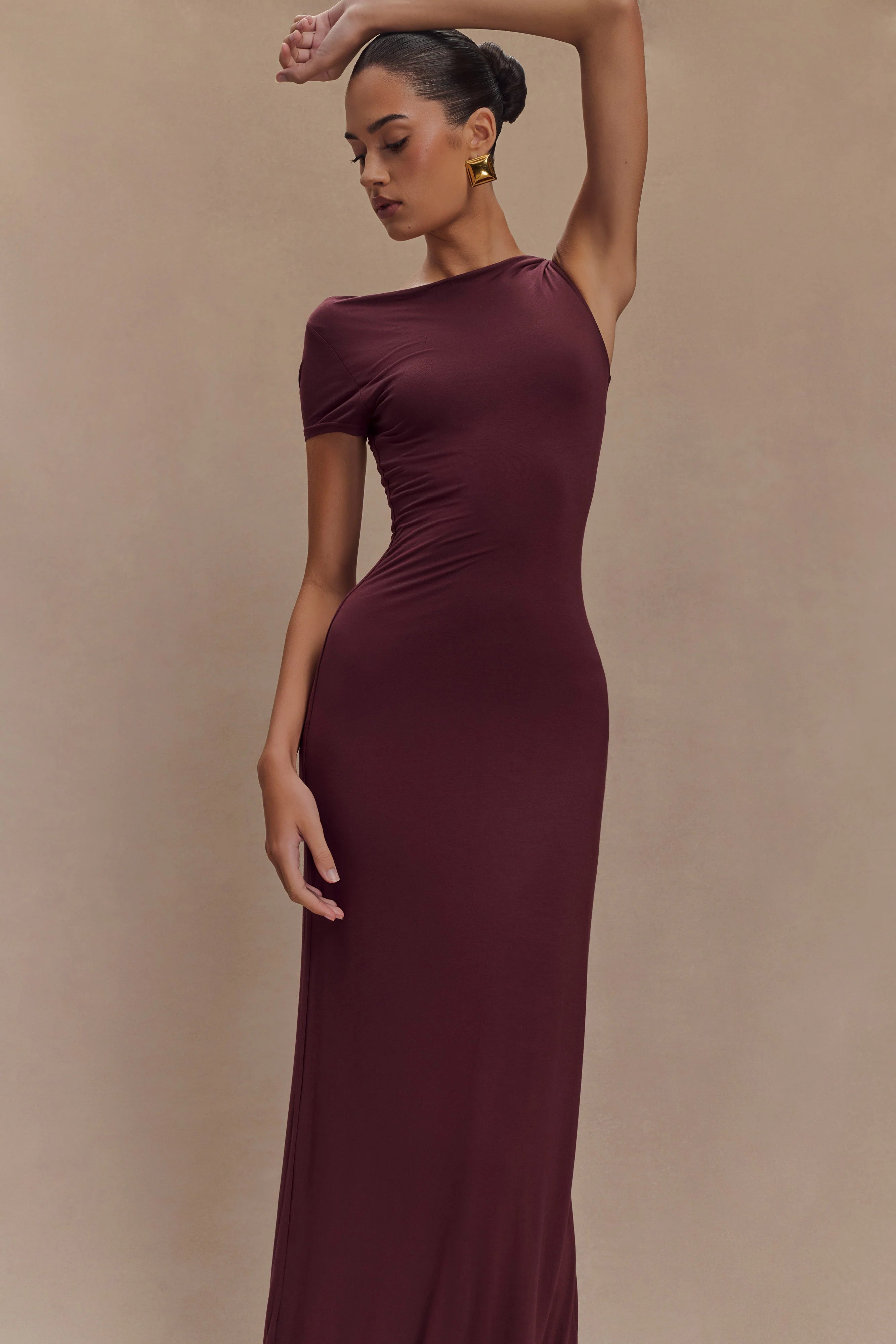 Step out in the TAMSIN Short Sleeve Modal Maxi Dress, a seamless fusion of style and comfort. The maxi length offers a graceful silhouette, while the asymmetrical neckline brings a modern edge. A knotted shoulder detail adds a subtle, chic accent, creating a look that’s effortlessly polished. Crafted from soft modal fabric, this dress ensures all-day comfort with an elevated feel. Perfect for both casual and formal occasions, it’s a timeless piece that makes a refined yet relaxed statement.