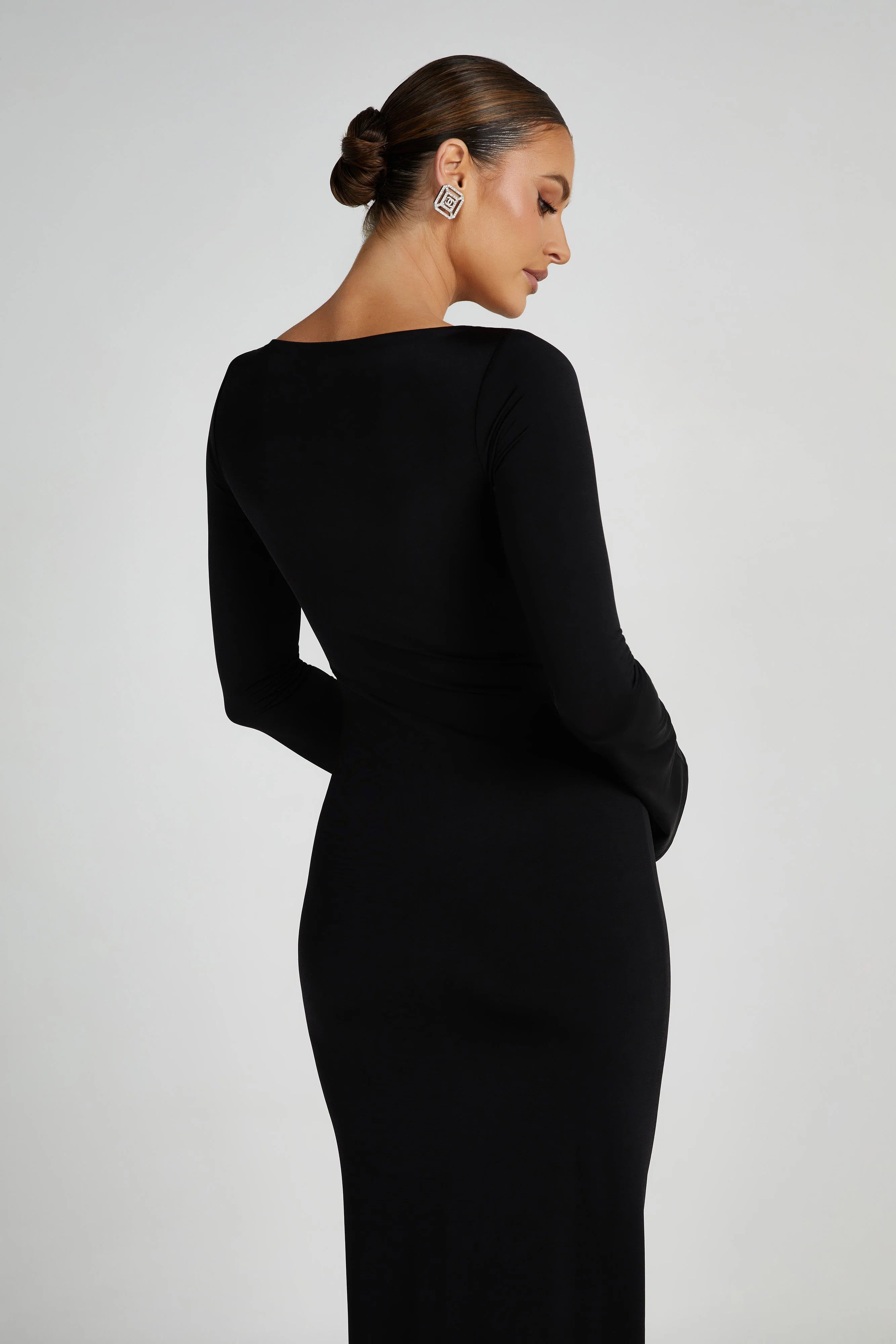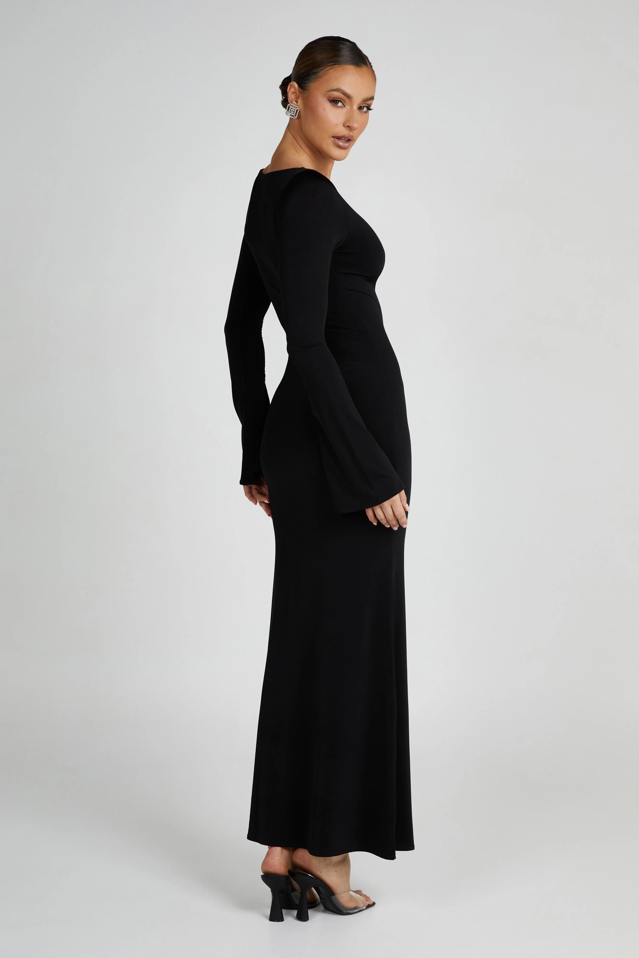 Beautifully body-hugging, TARNA is a slinky maxi dress with a boat neckline, flared sleeves, and a classic fishtail hem. This dress keeps you covered, but its stretchy material enhances your silhouette in all the best ways. The flared shape of both the sleeves and the hem adds an air of confidence and regality to your look, making this the perfect fit for evening events.