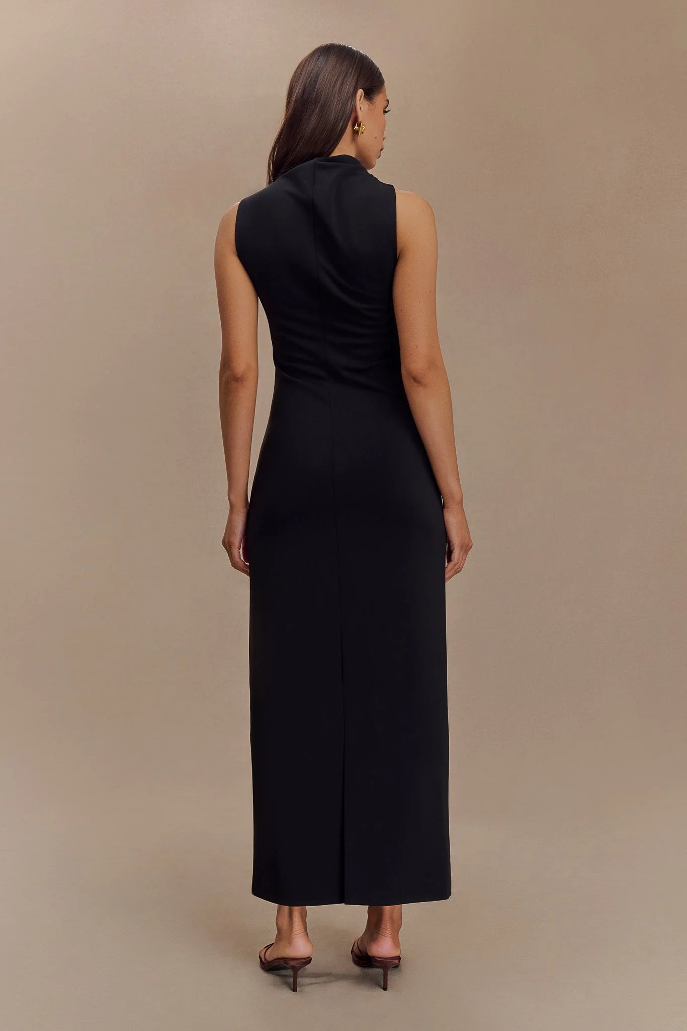 The TAYLOR Draped Crepe Midi Dress is a stunning fusion of elegance and modern design. Its asymmetrical gathered neckline adds a unique and sophisticated touch, while the fitted bodice enhances your silhouette with its flattering panel detailing. The midi length and straight skirt create a sleek, streamlined look, perfect for both formal and semi-formal occasions. A side zip ensures a smooth fit, and the centre back vent allows for ease of movement. The Taylor Dress combines refined style with contemporary details, making it a standout choice for any special event.