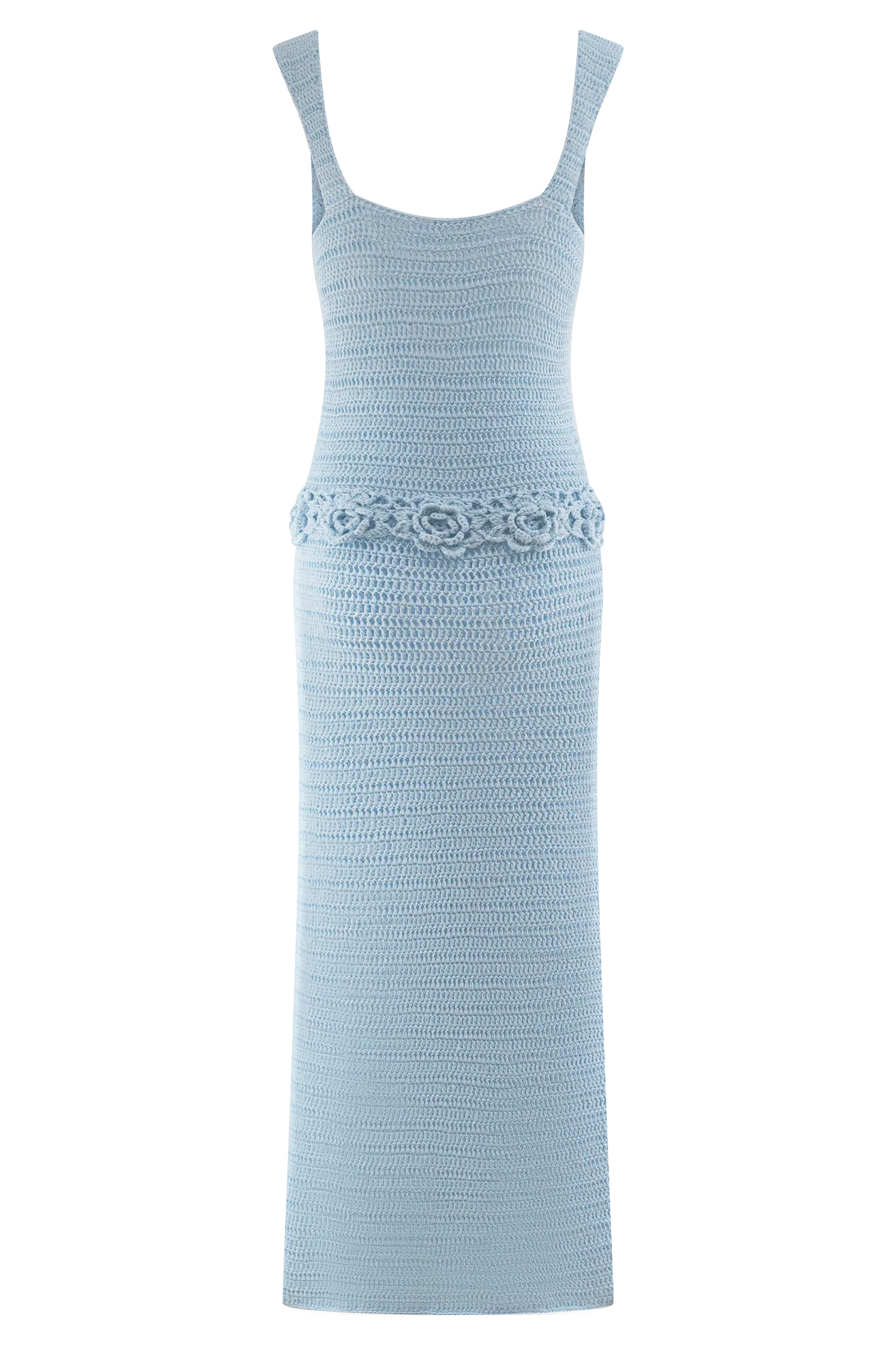 The TEAGAN Floral Hand Crochet Midi Dress is a stunning blend of artistry and femininity. Designed with a delicate sweetheart neckline, this bodycon silhouette is adorned with intricate hand-crocheted roses along the neckline and floral accents at the front and back waistline for a beautifully sculpted look. The pull-on design ensures effortless wear, while the midi length enhances its timeless elegance. Unlined for a lightweight, breathable feel, this dress is a statement piece perfect for sunlit escapes, romantic evenings, or special occasions that call for effortless charm.