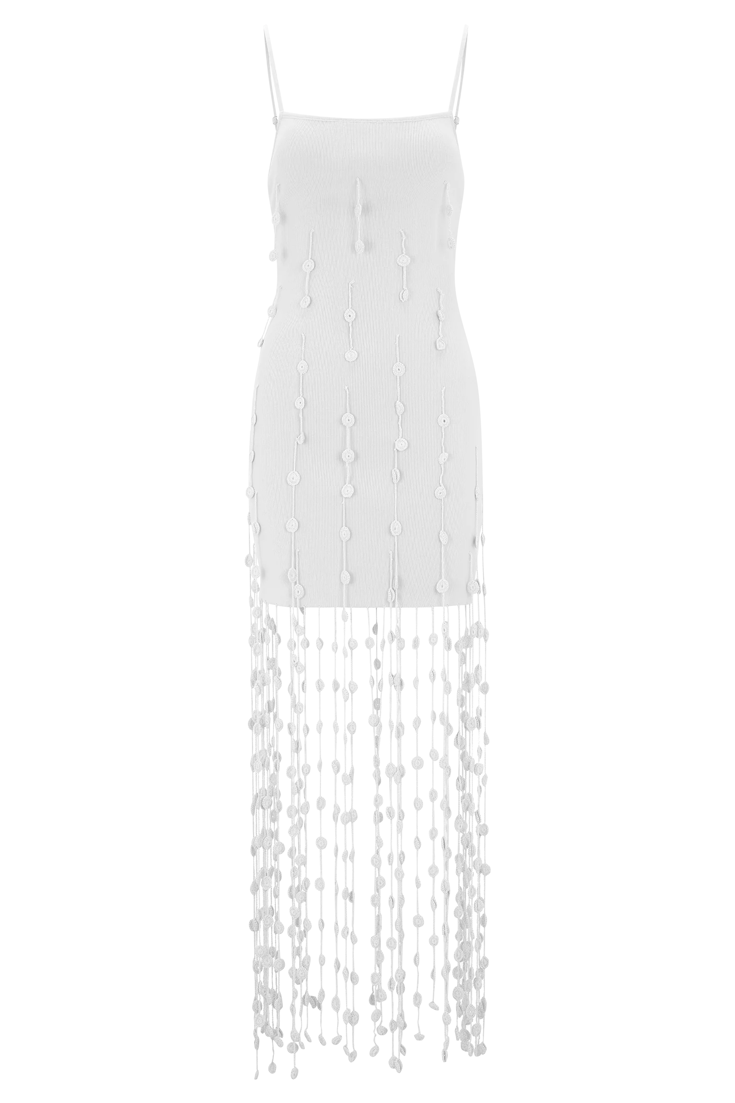 The TOVE Hand Knit Flower Mini Dress celebrates texture and detail with its thick knit fabrication and delicate crochet floral accents. Designed in a bodycon silhouette, it features adjustable straps for a customised fit and is left unlined for a natural, breathable feel. Perfect for warm-weather styling, this dress offers a unique, artisanal touch that makes every wear feel special.