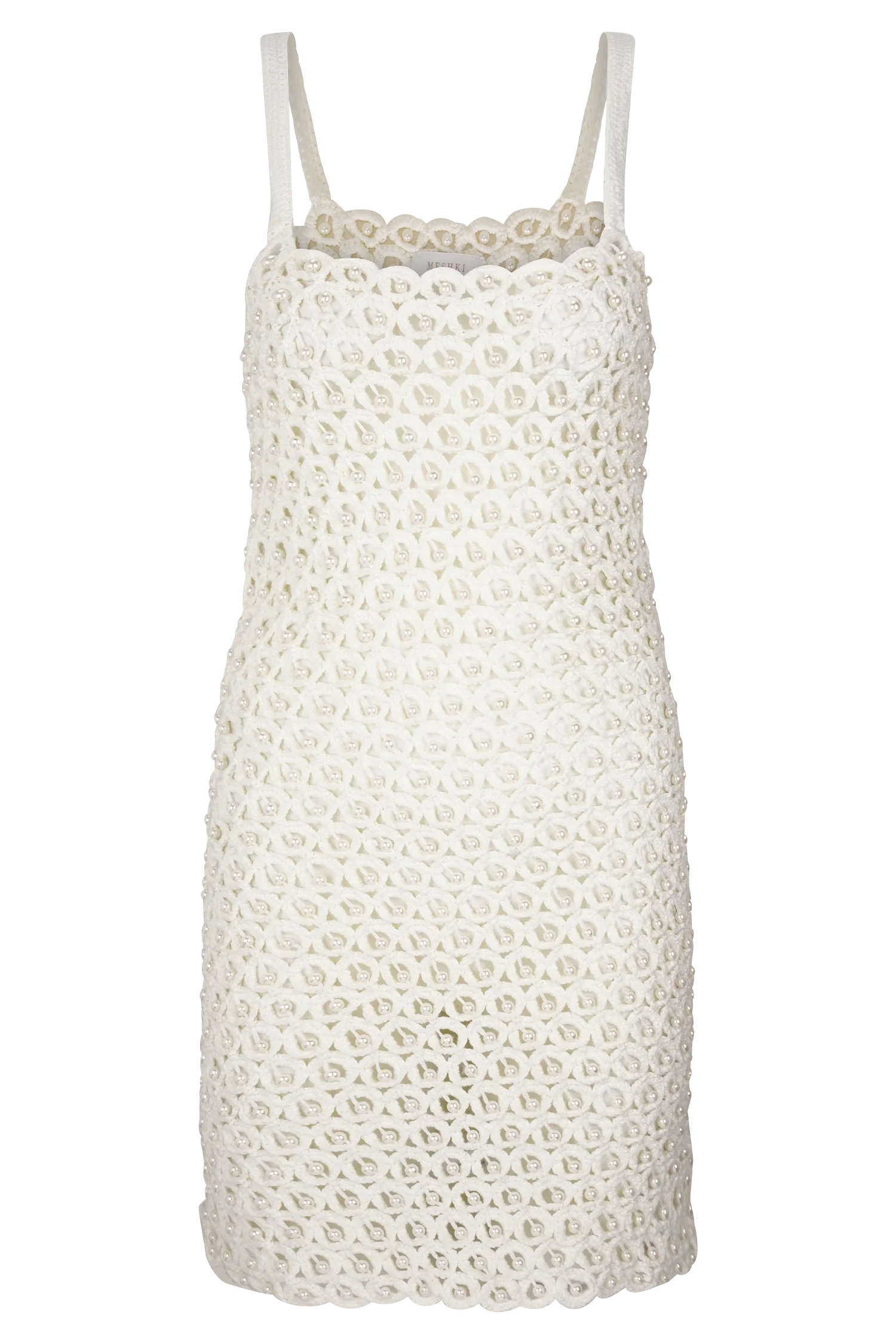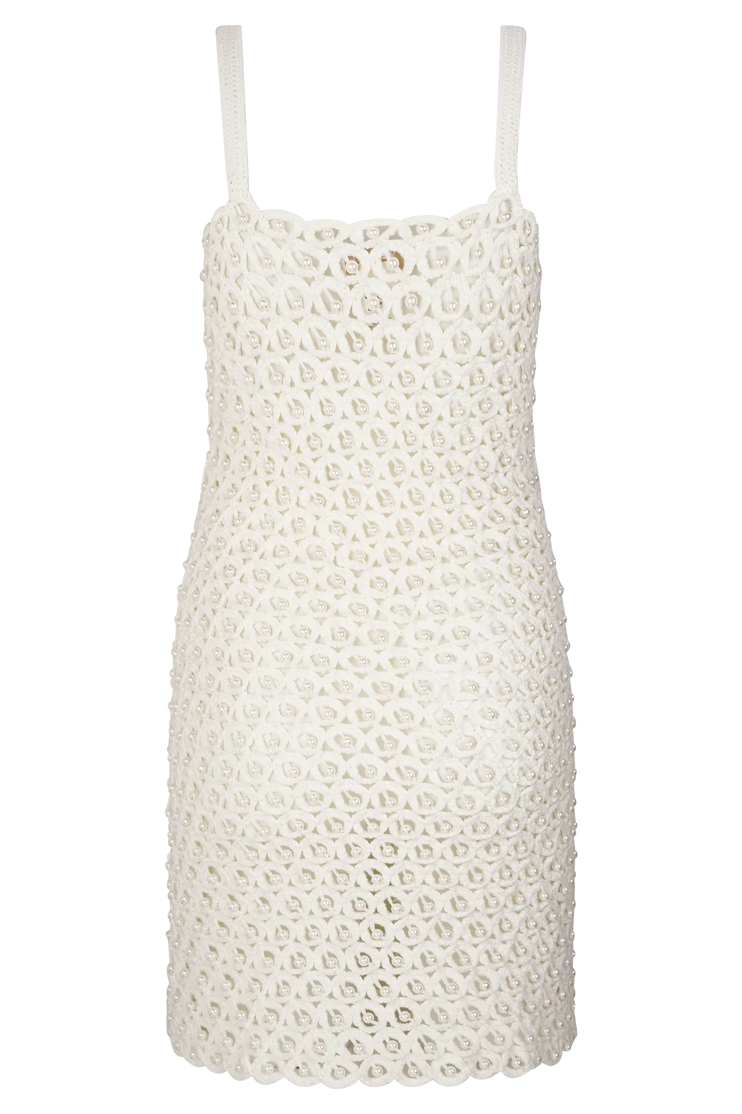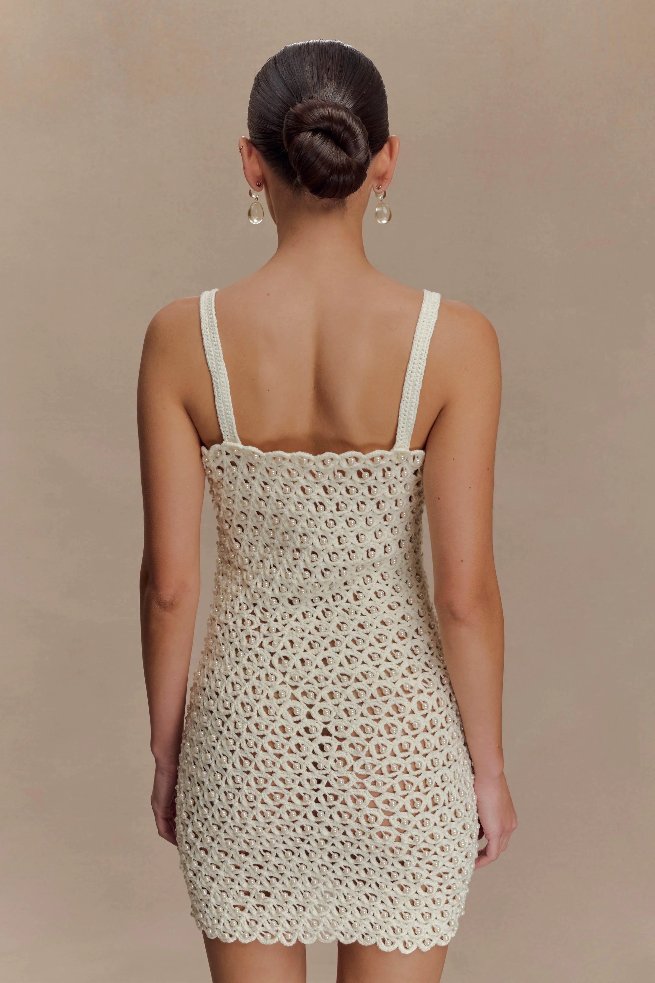 The VANESSA Hand Crochet Pearl Mini Dress is a standout piece that blends artisanal craftsmanship with elevated detail. Featuring a straight neckline and delicate shoulder straps, this mini dress is crafted from intricate hand crochet knit adorned with pearl accents throughout. Unlined for a sheer, lightweight finish, Vanessa is perfect for layering over swimwear or styled boldly for warm-weather events—capturing the perfect balance of texture, elegance, and coastal cool.