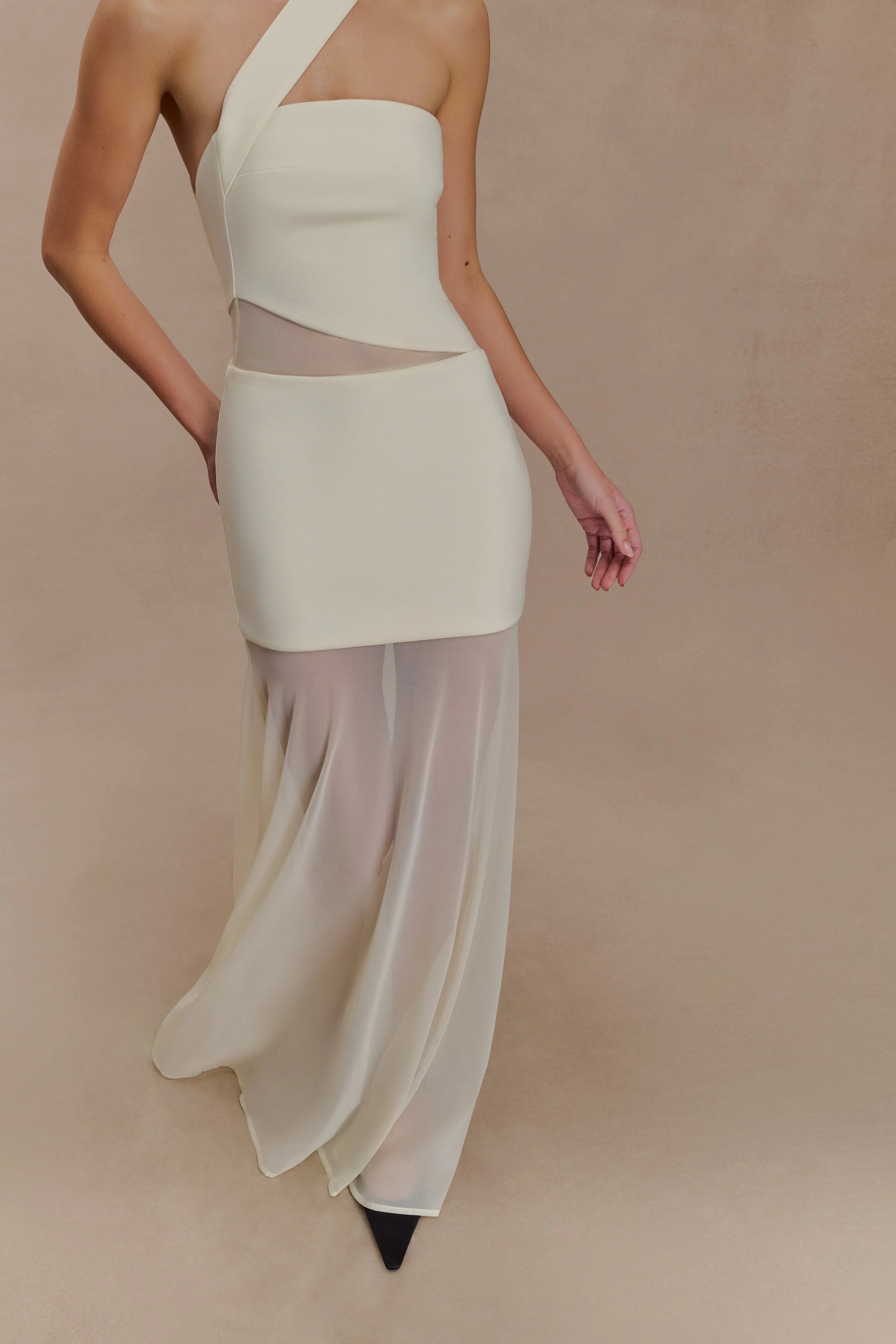 The VASHTI Cut Out Mesh Maxi Dress is made for modern moments with a hint of drama. Featuring a statement one-shoulder neckline, this dress showcases mesh panel cut-outs at the waist and a flowing mesh skirt that reveals just enough. The low back adds unexpected allure, while the relaxed fit keeps things effortless. Partially lined for a sheer-meets-structured look, this dress is your answer to event dressing with an edge.